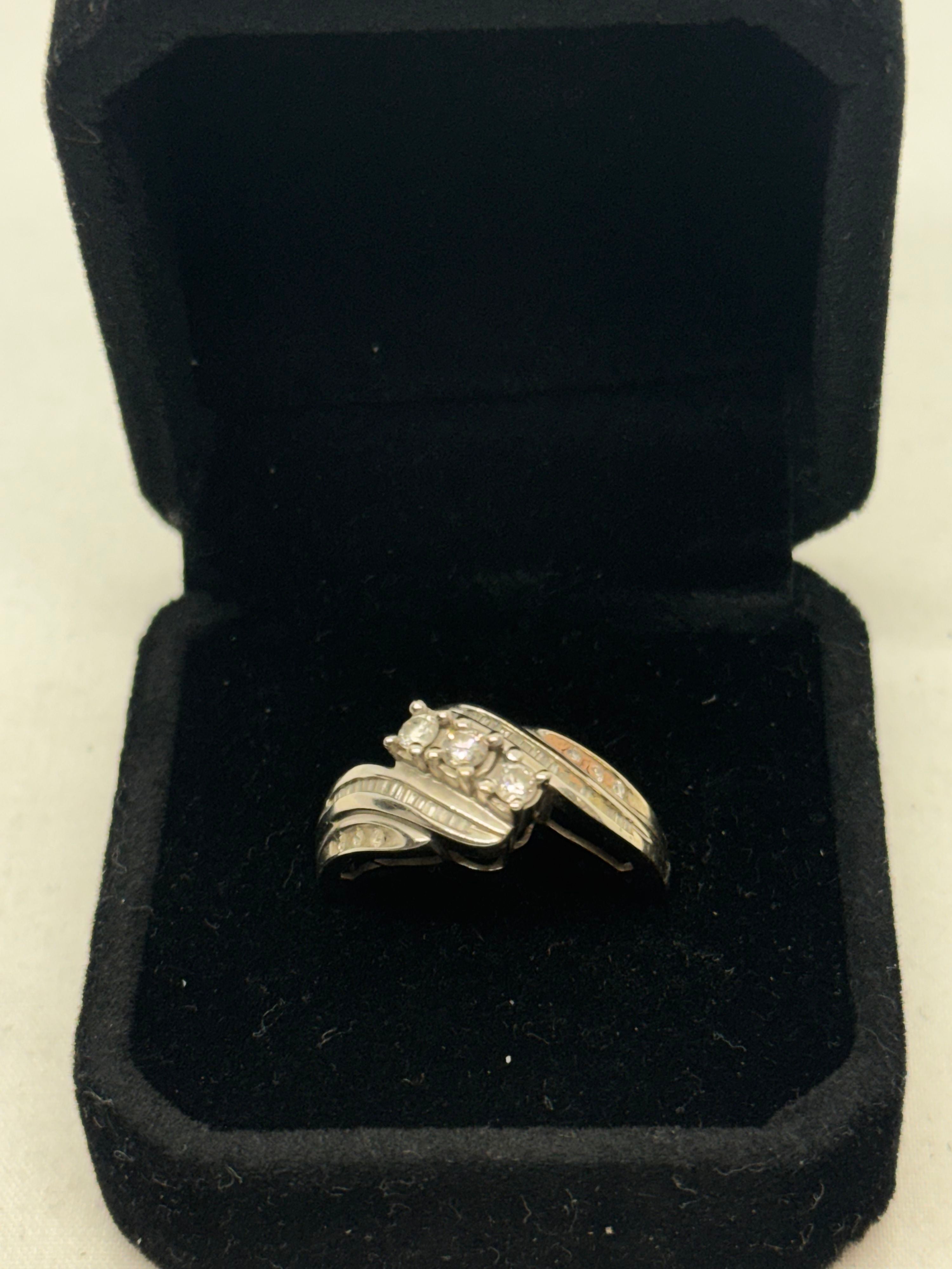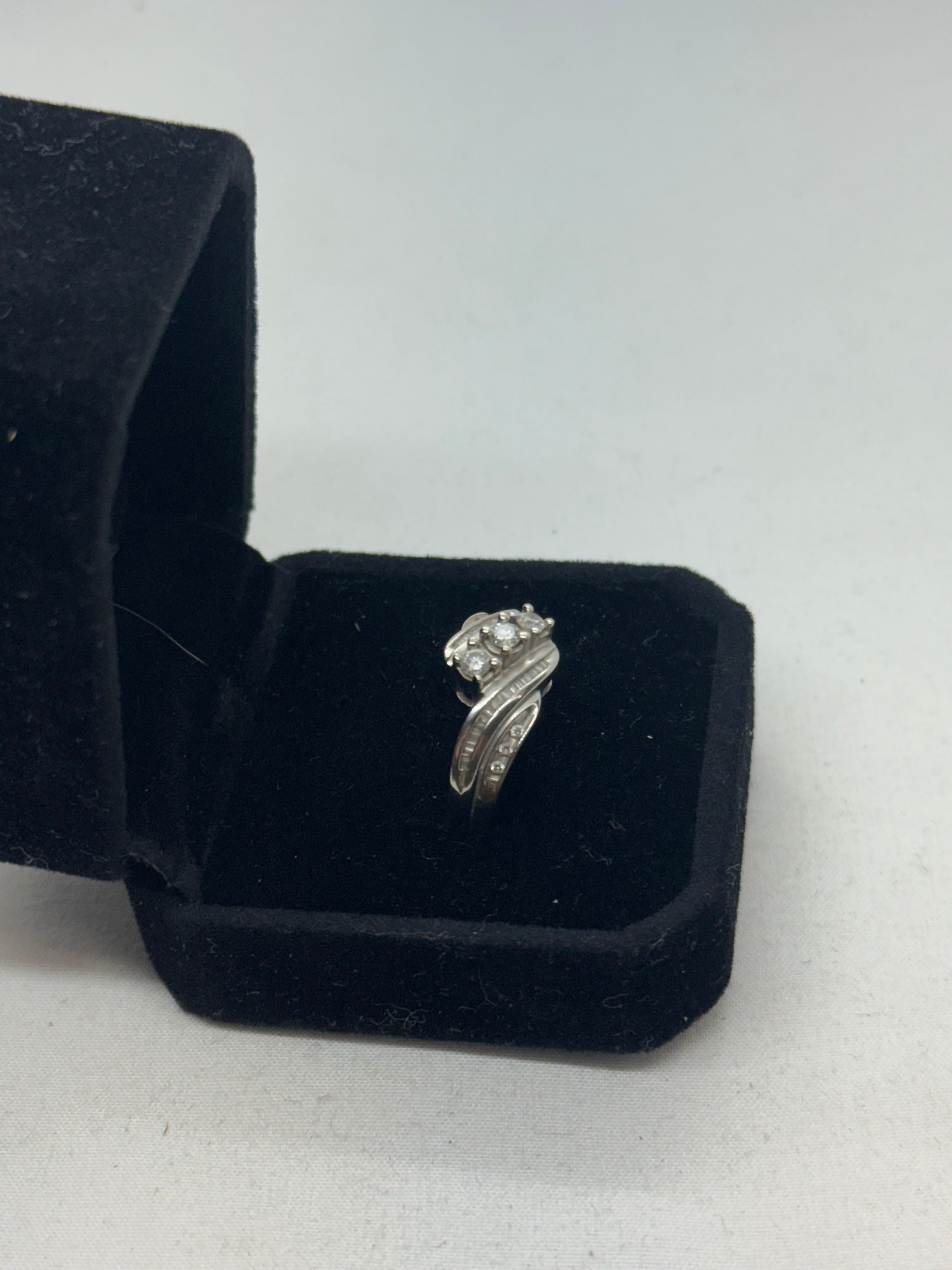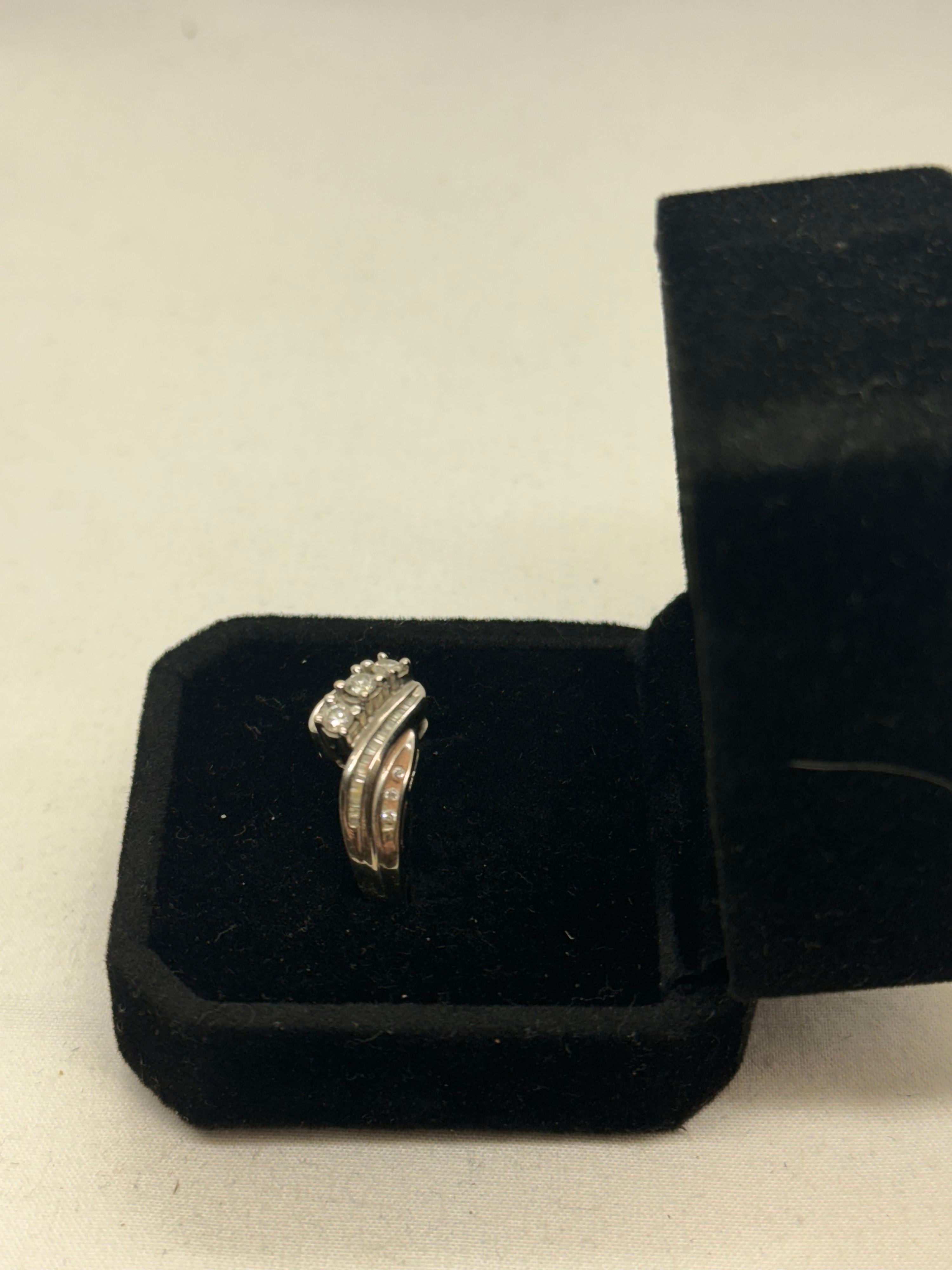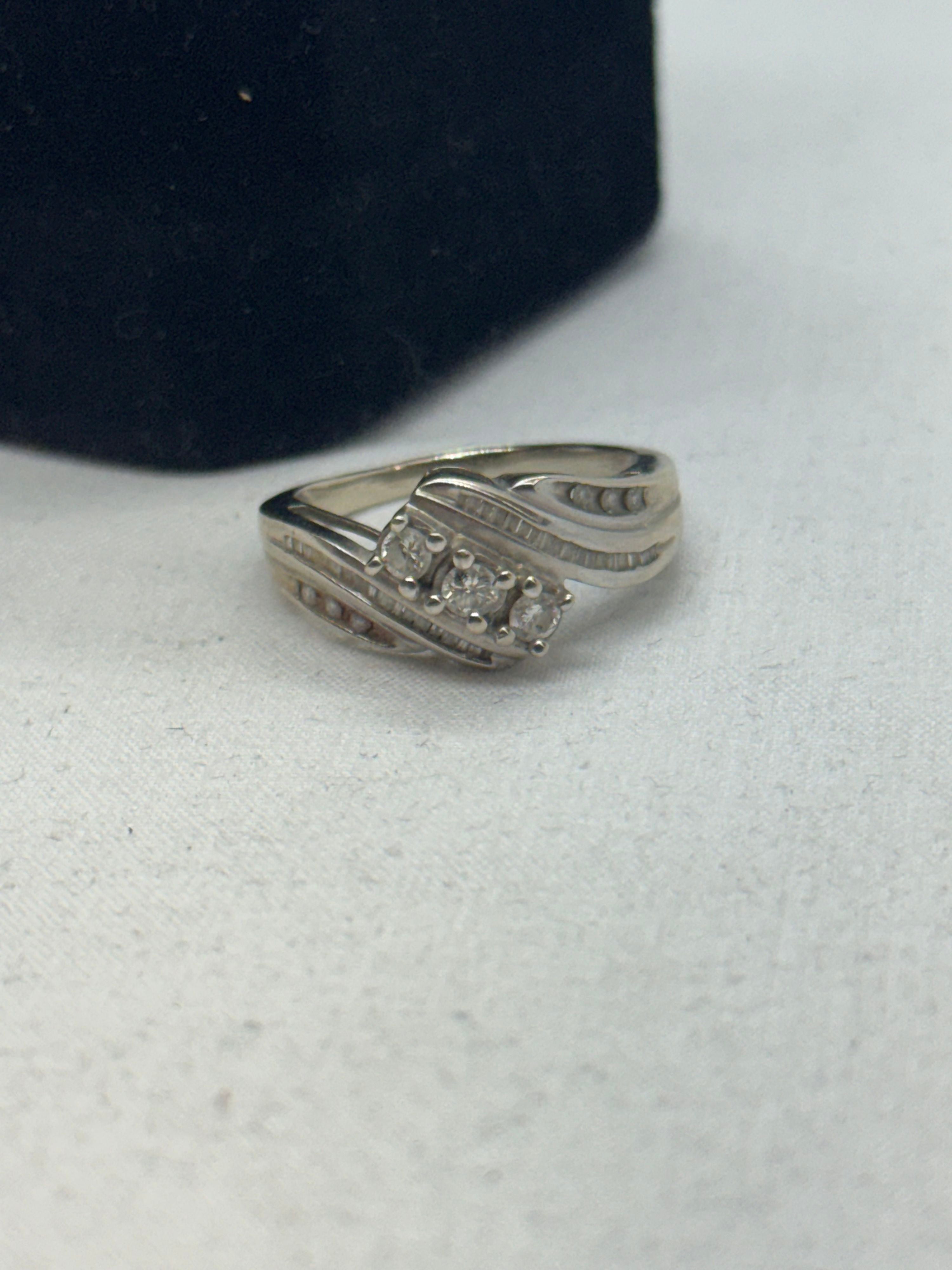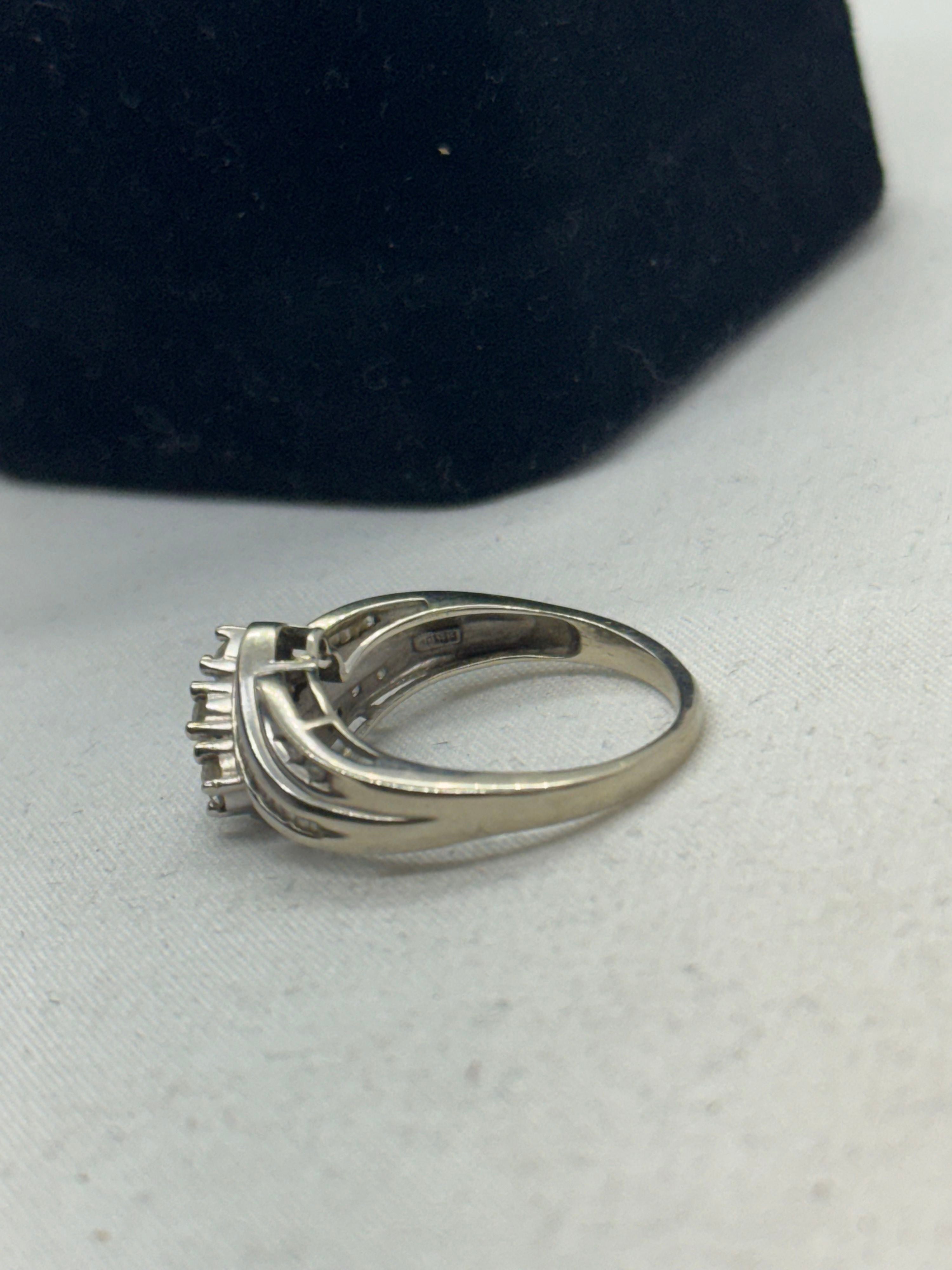 10K White Gold Diamond Cluster Ring 3.6g Vintage Size 8