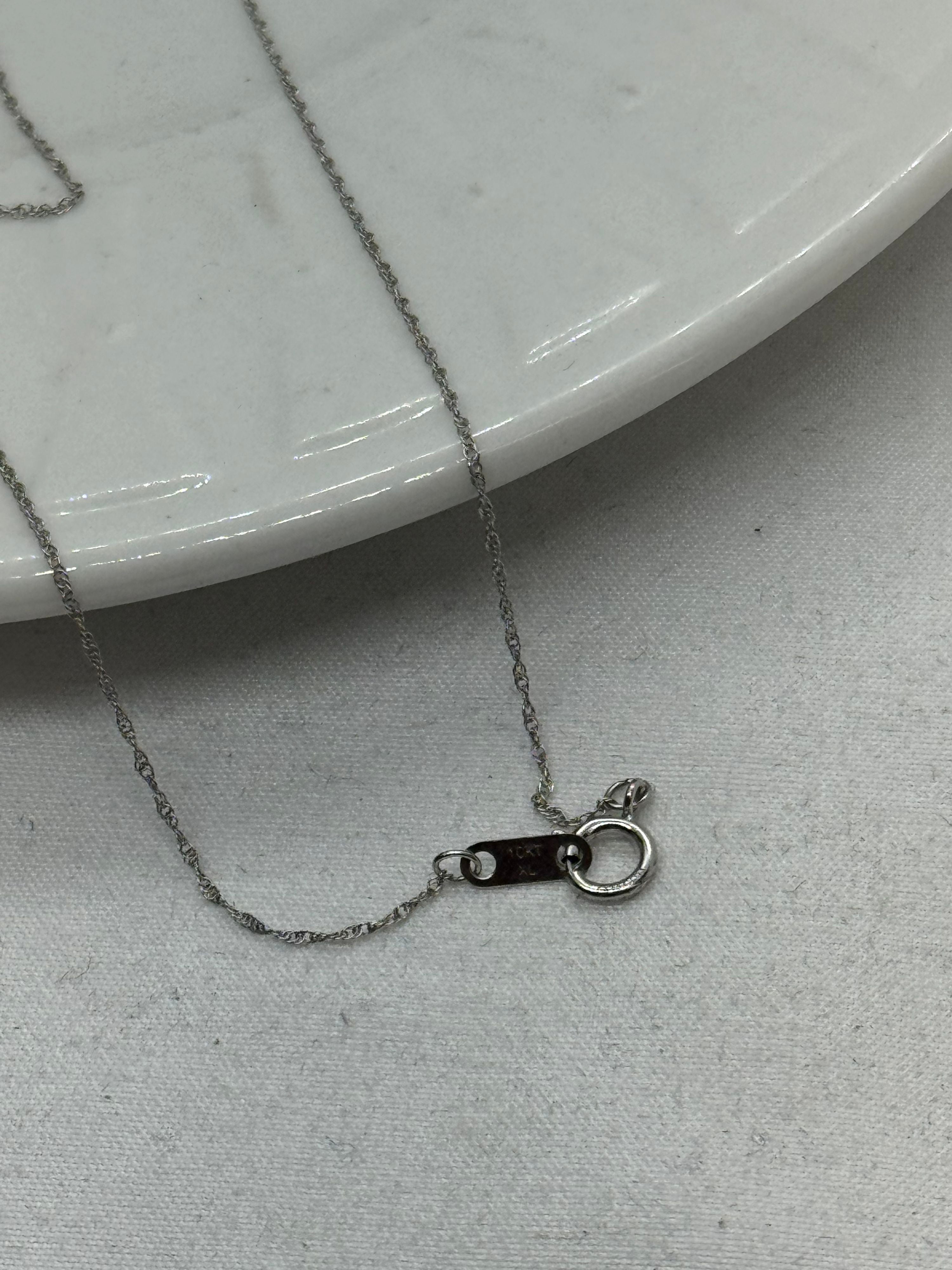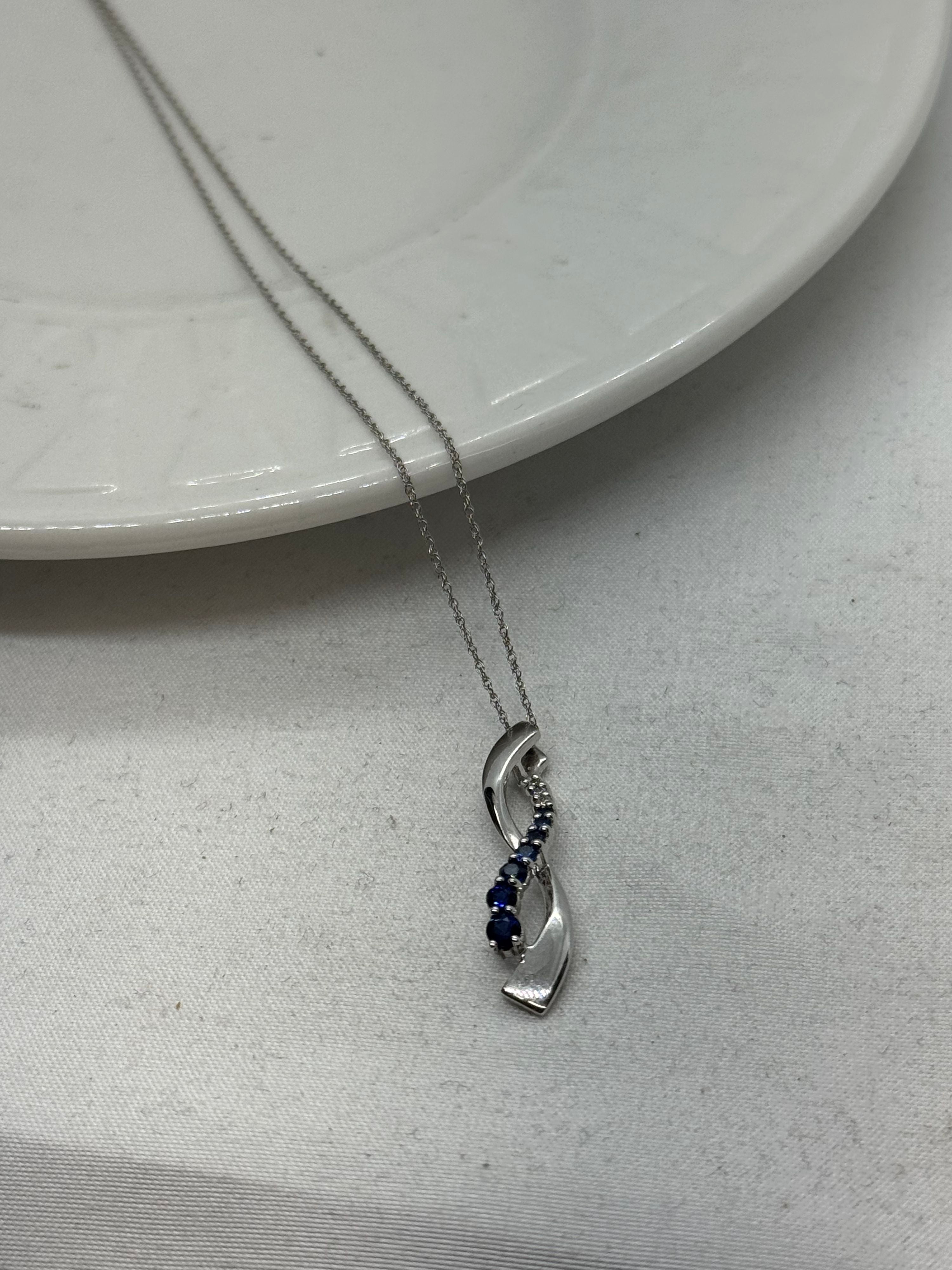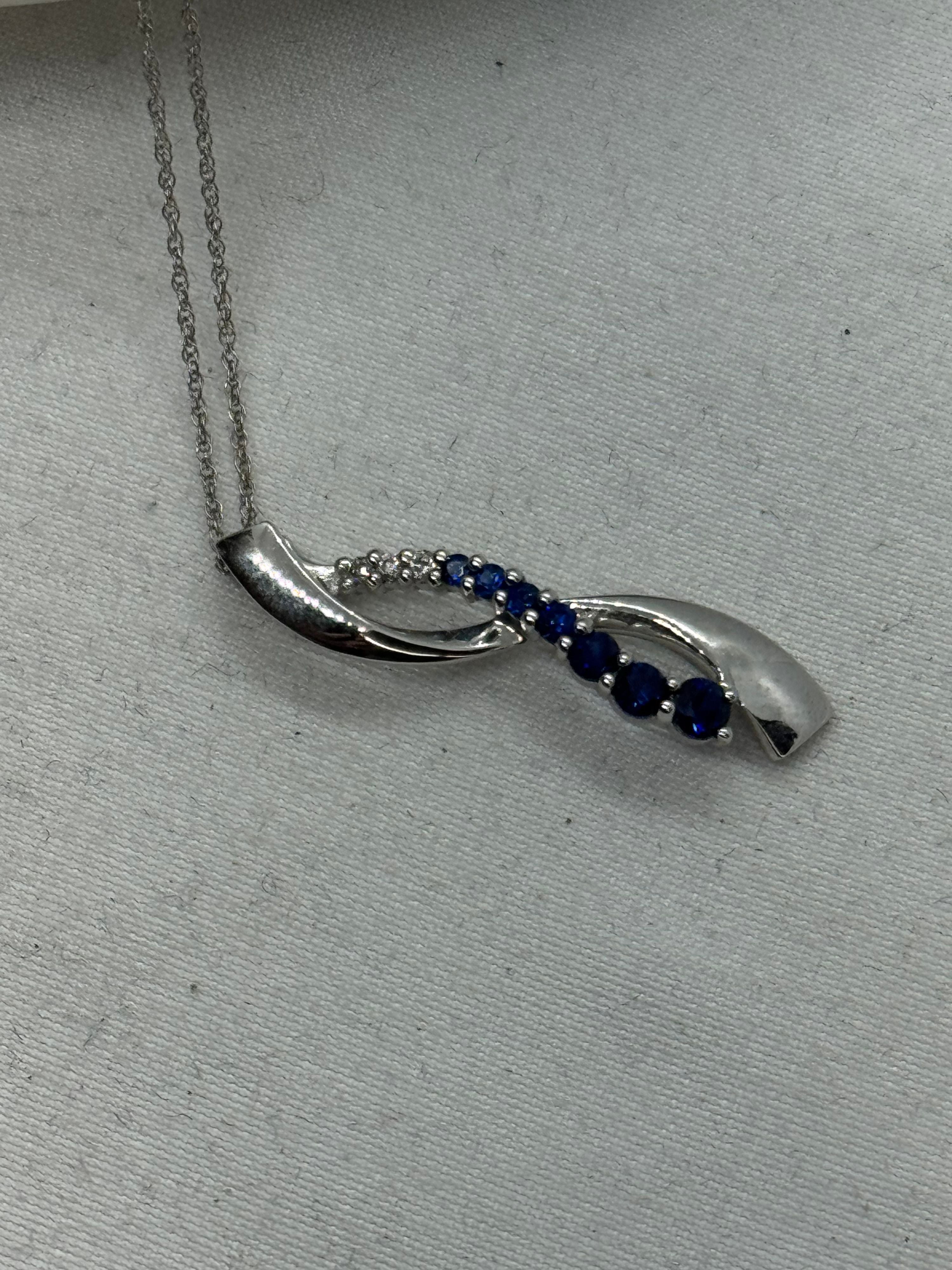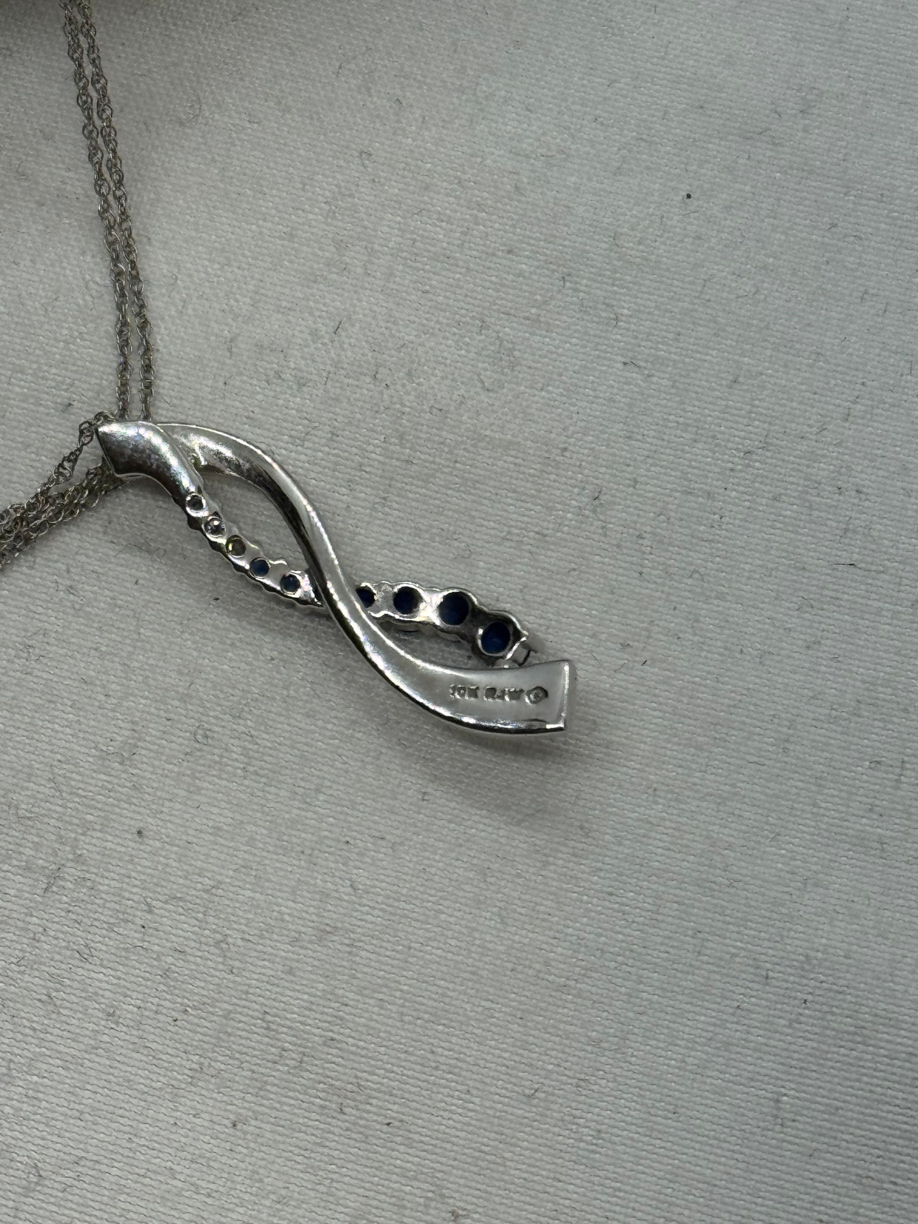10K White Gold Sapphire Necklace 2.2g Diamond and Sapphire Infinity Pendant Vintage 18.25 in.