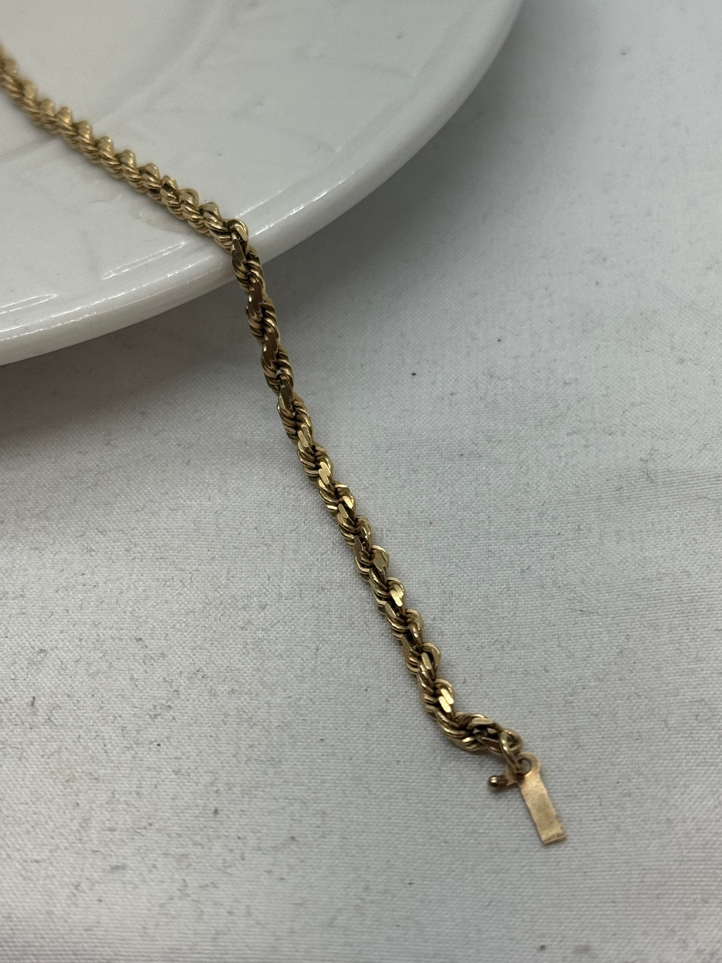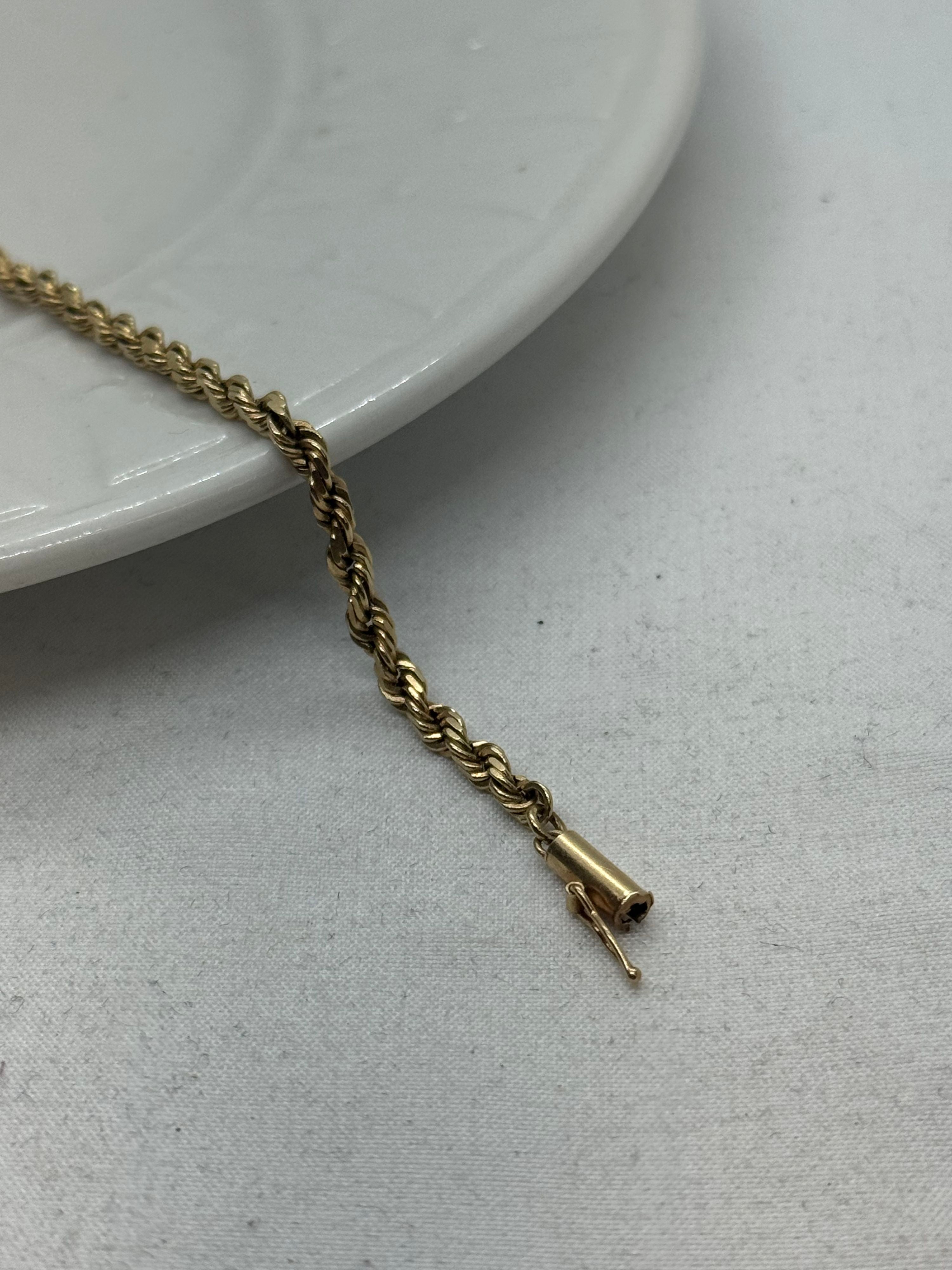 10K Yellow Gold Bracelet 6.5g Rope Chain Open Box Closure Vintage 7.25 in.
