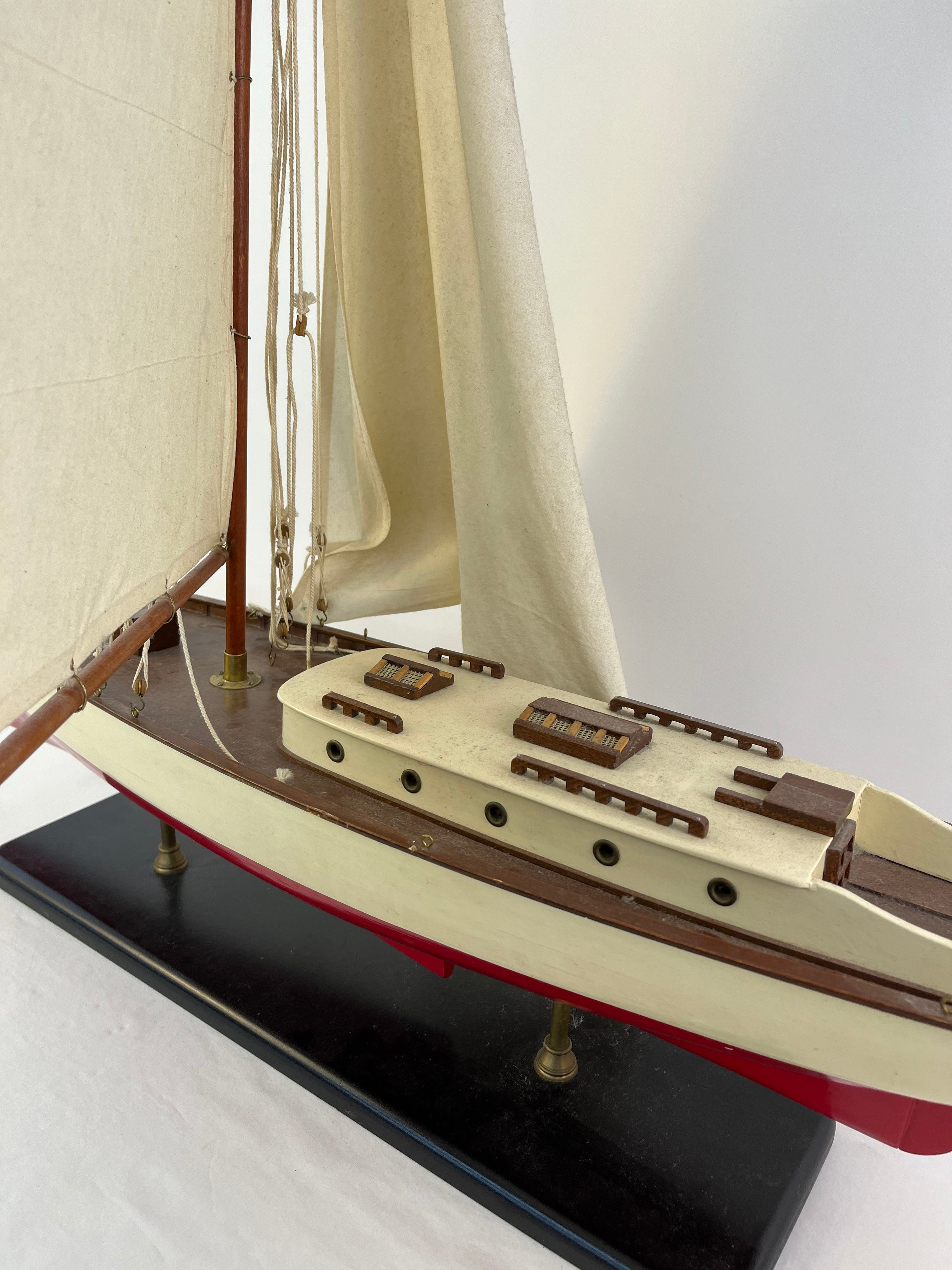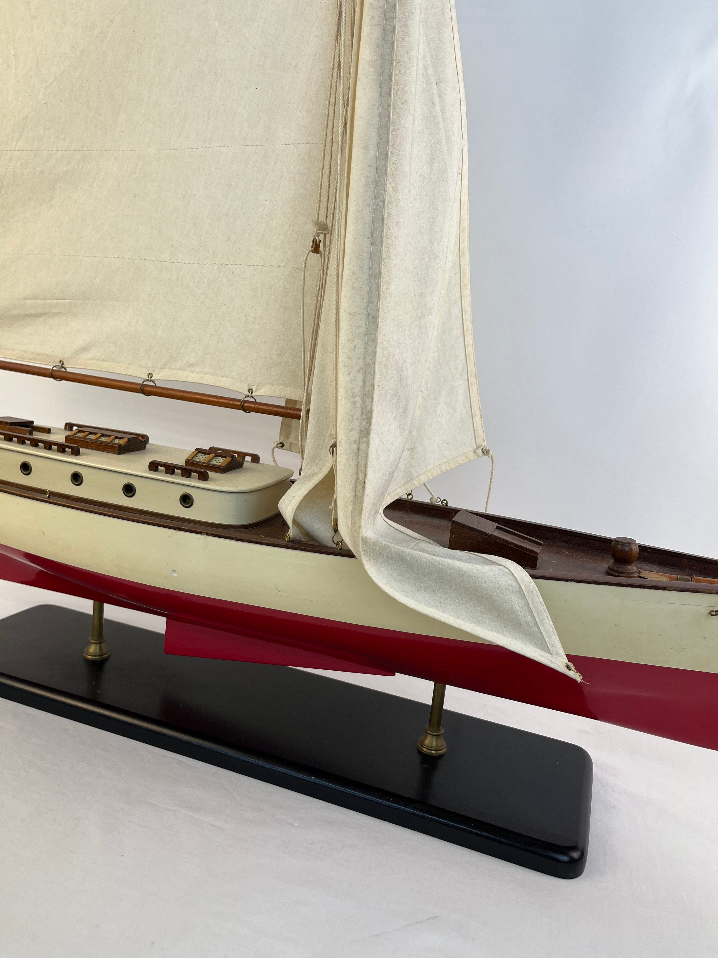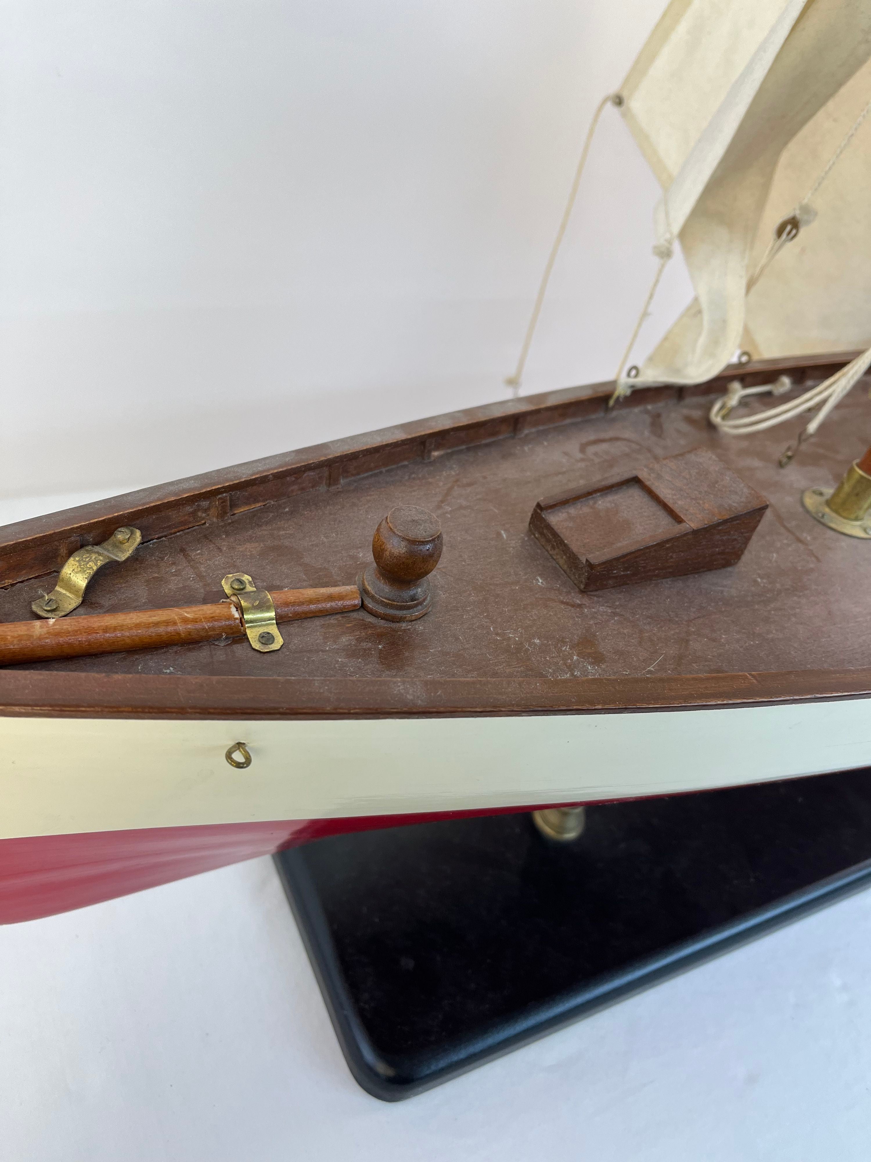 1930s Classic Yacht Large Wooden Model Sailboat Fully Built Nautical Decor