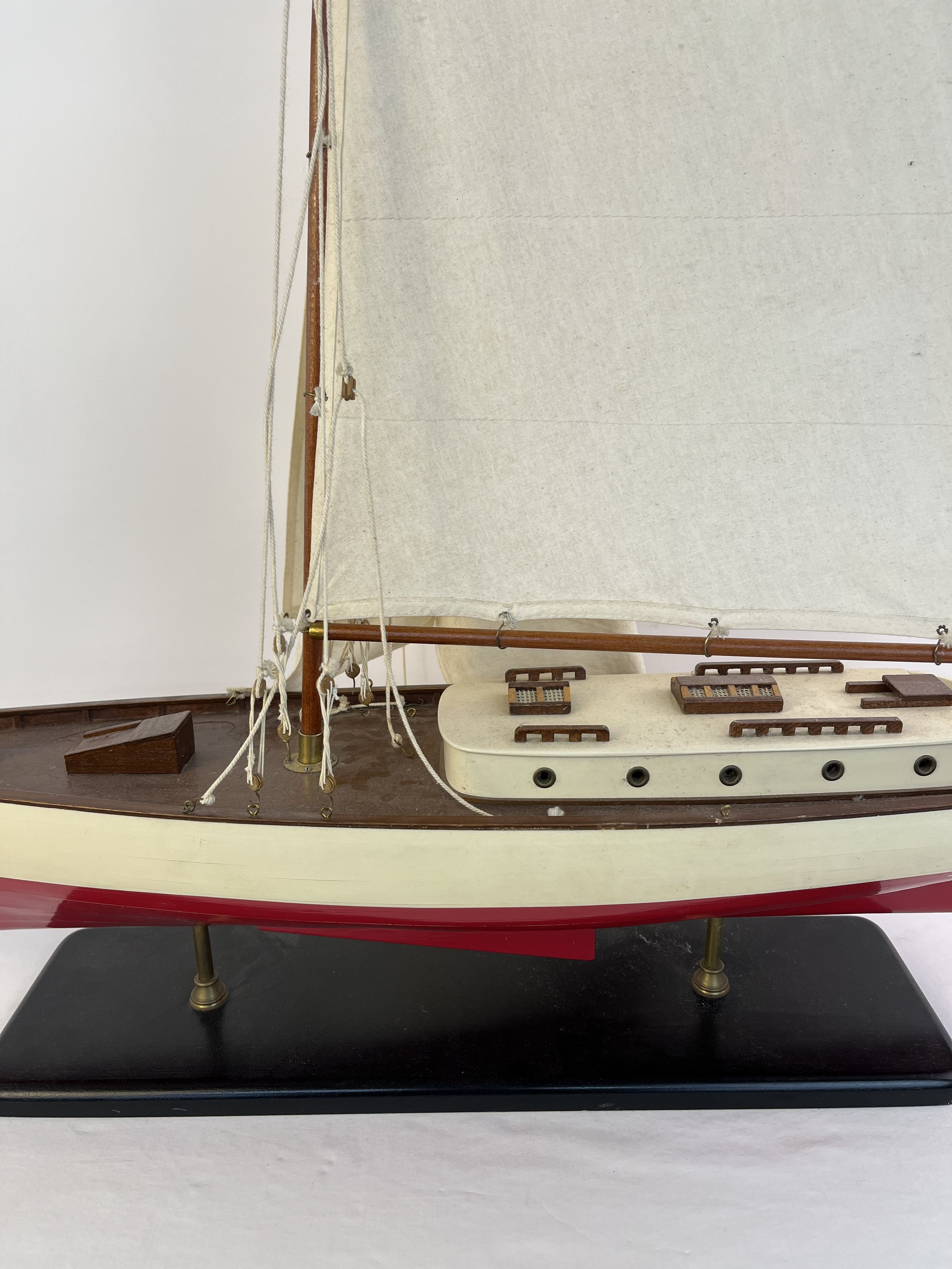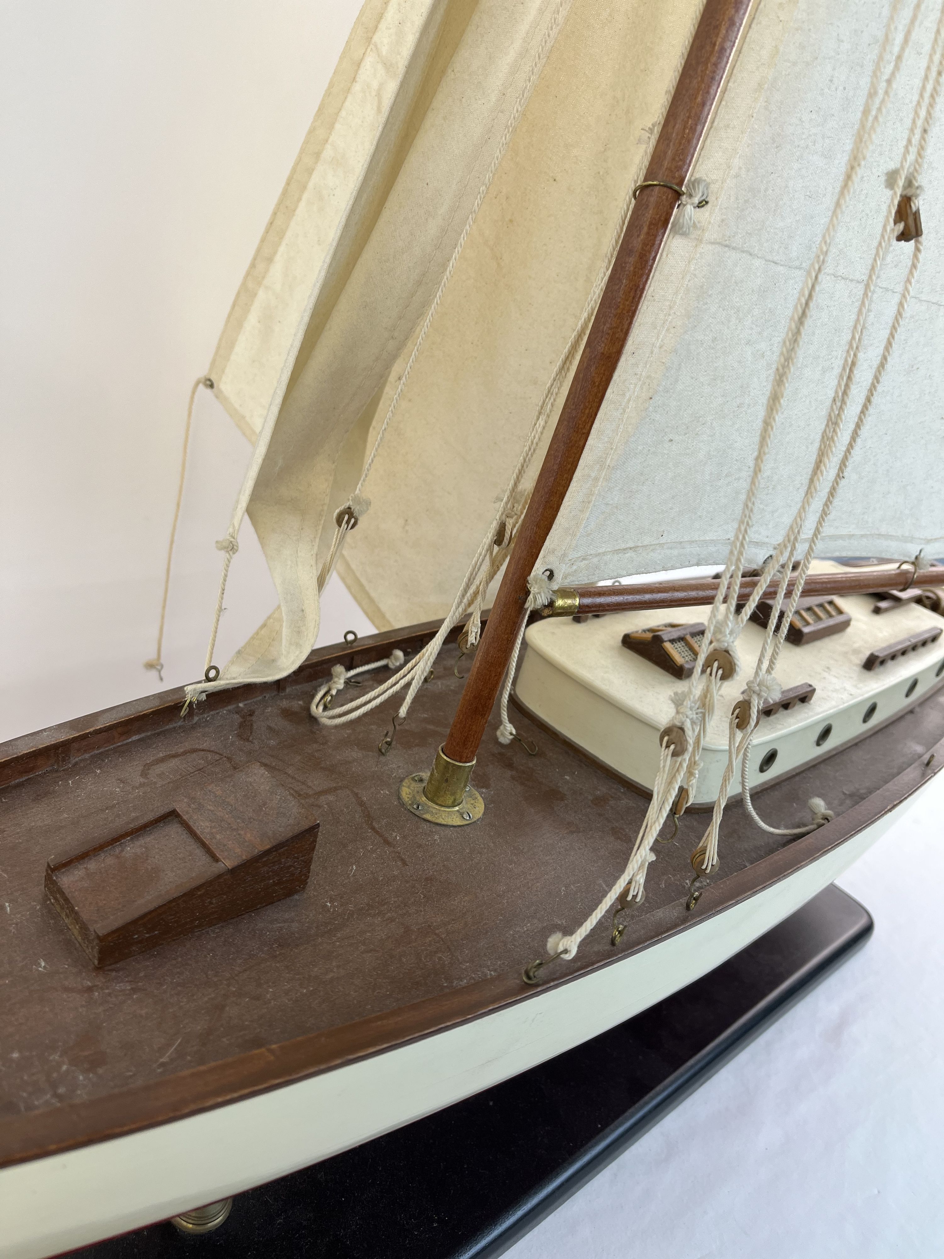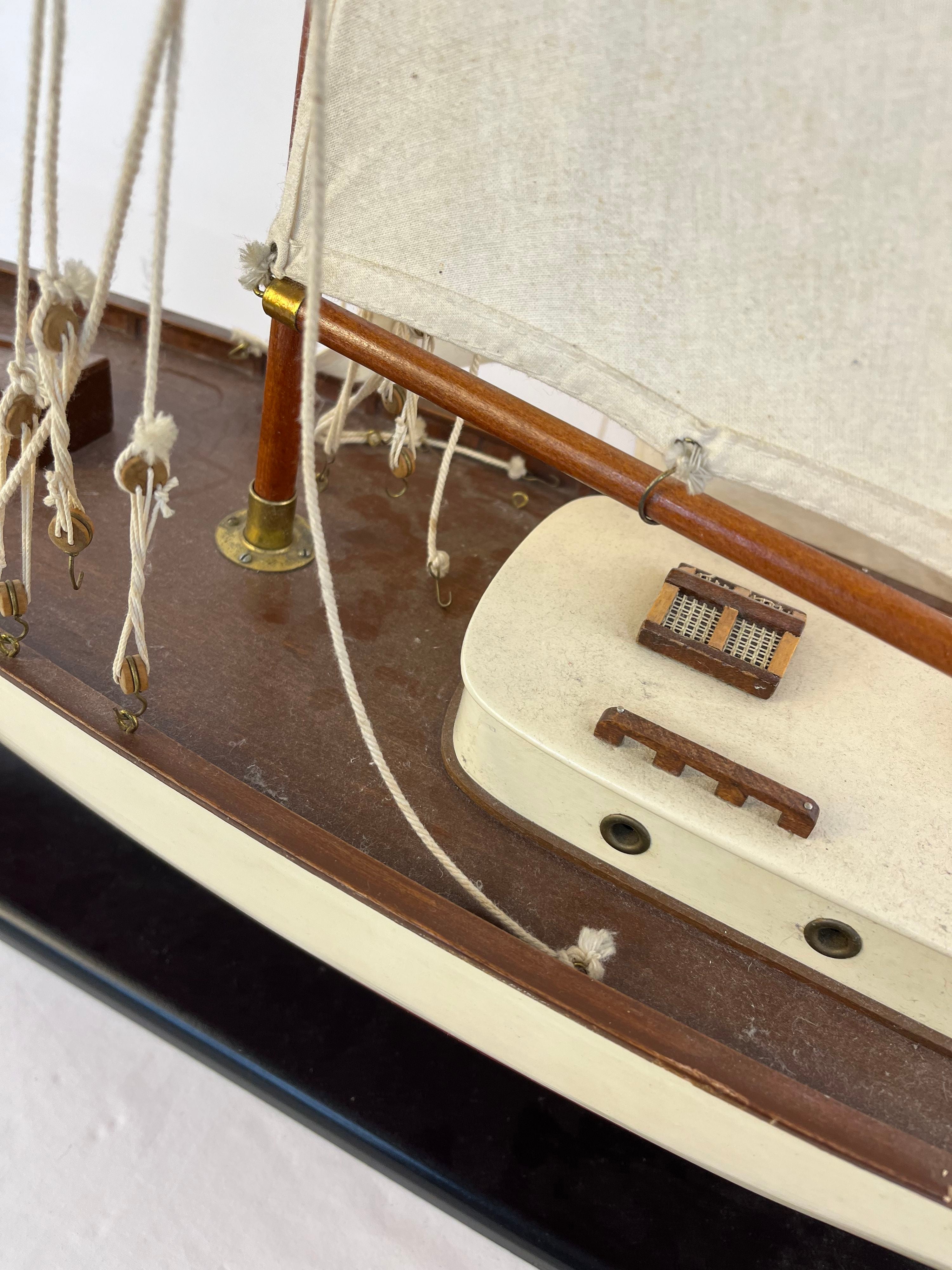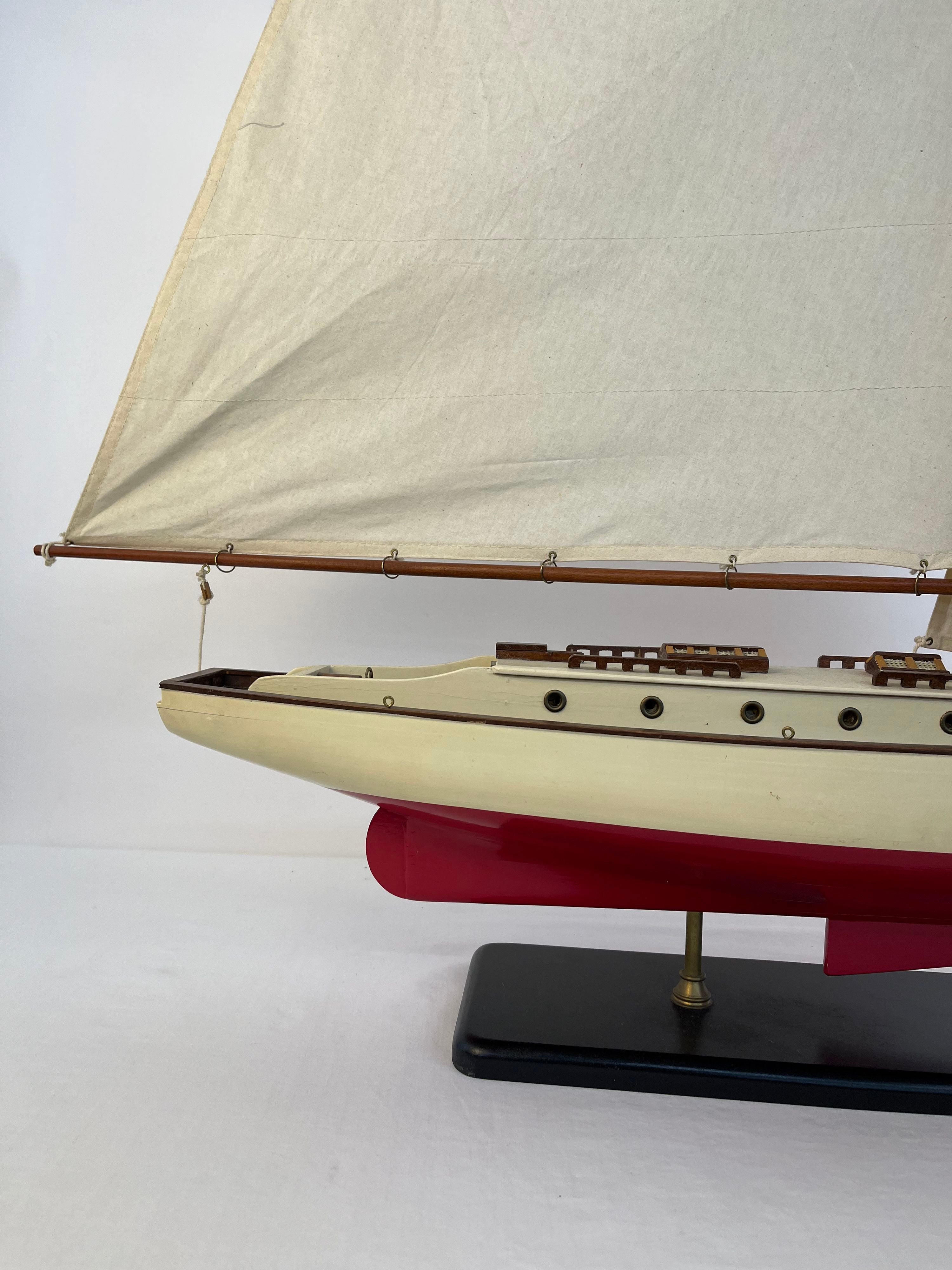1930s Classic Yacht Large Wooden Model Sailboat Fully Built Nautical Decor