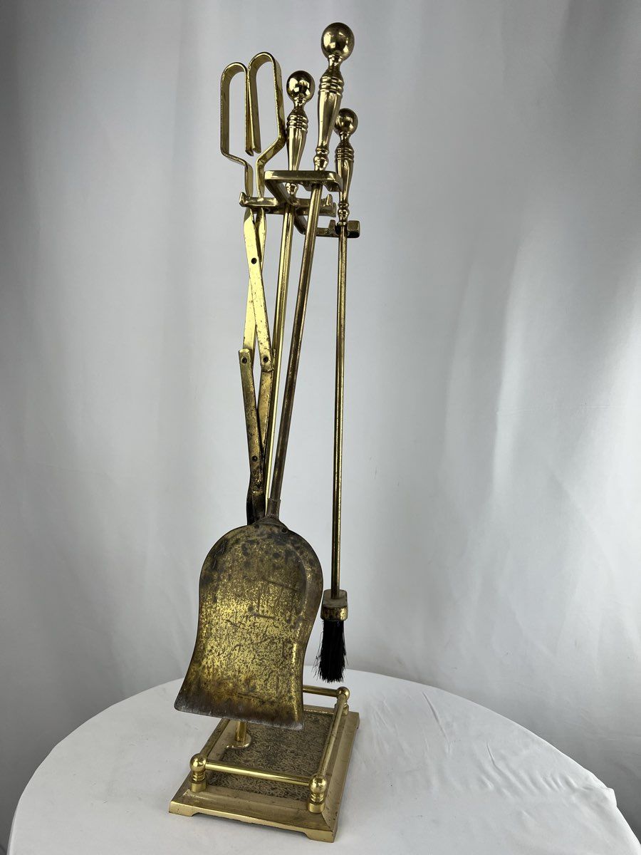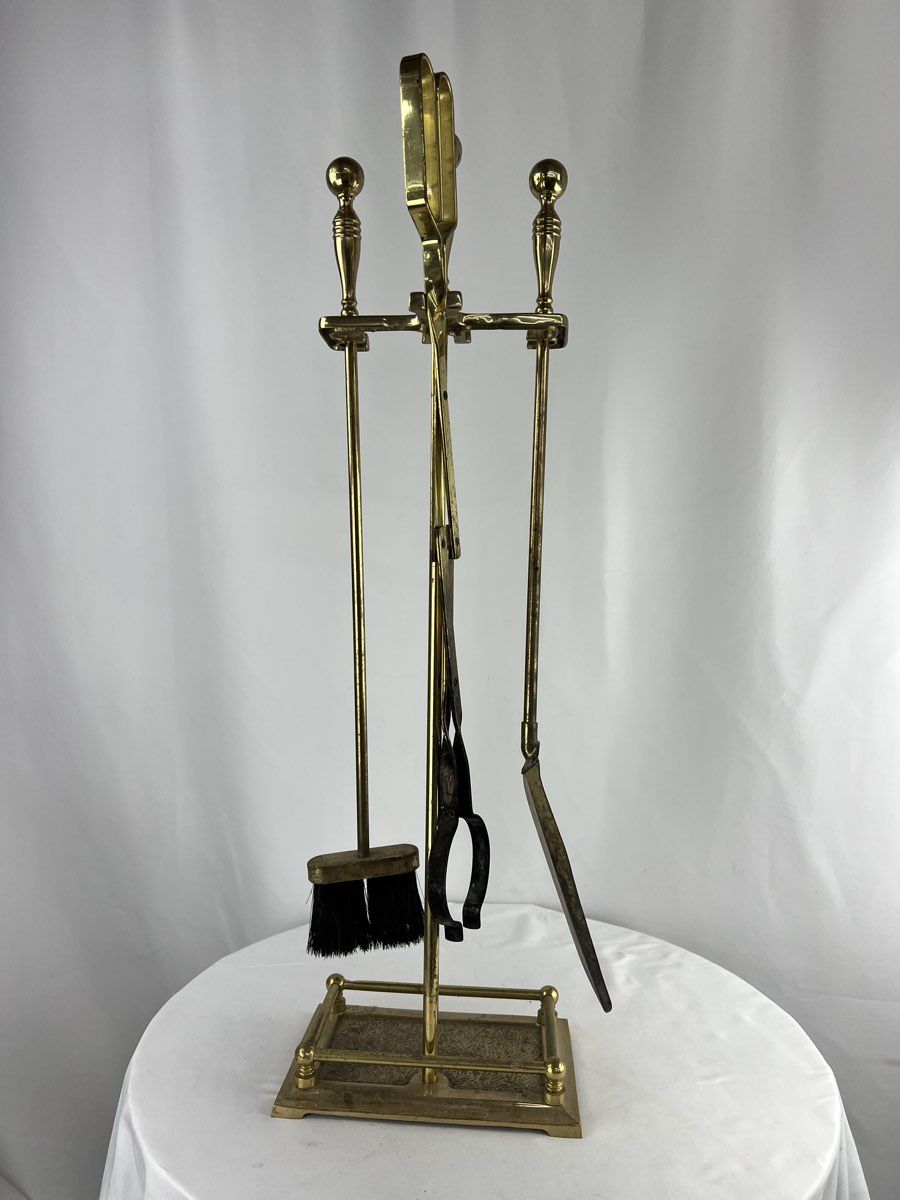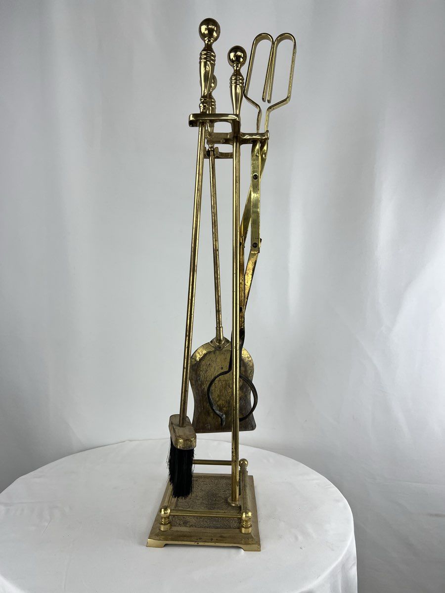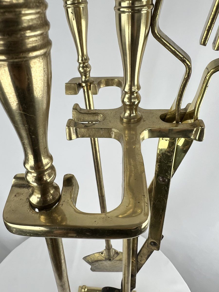 Gold Brass Fire Place Tool Set Contains: Brush, Tongs, Shovel, Stand