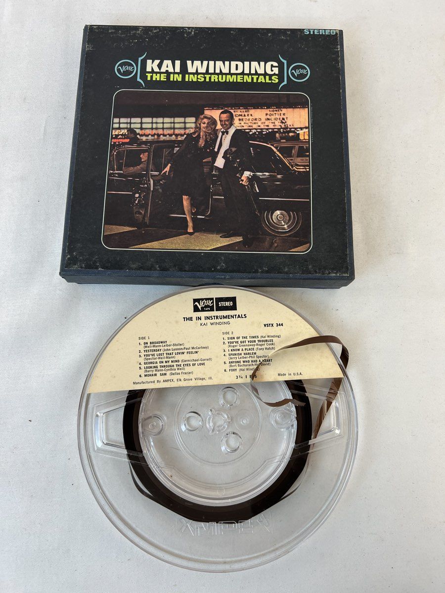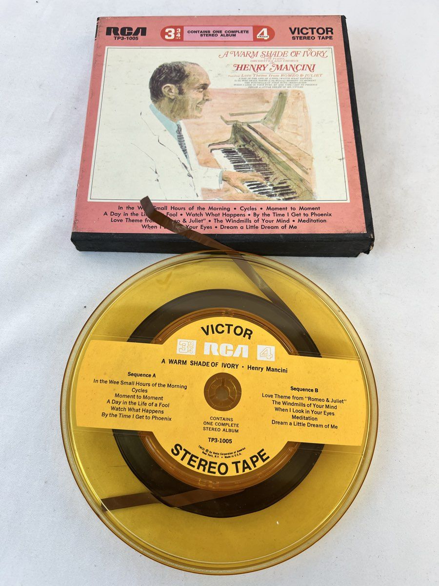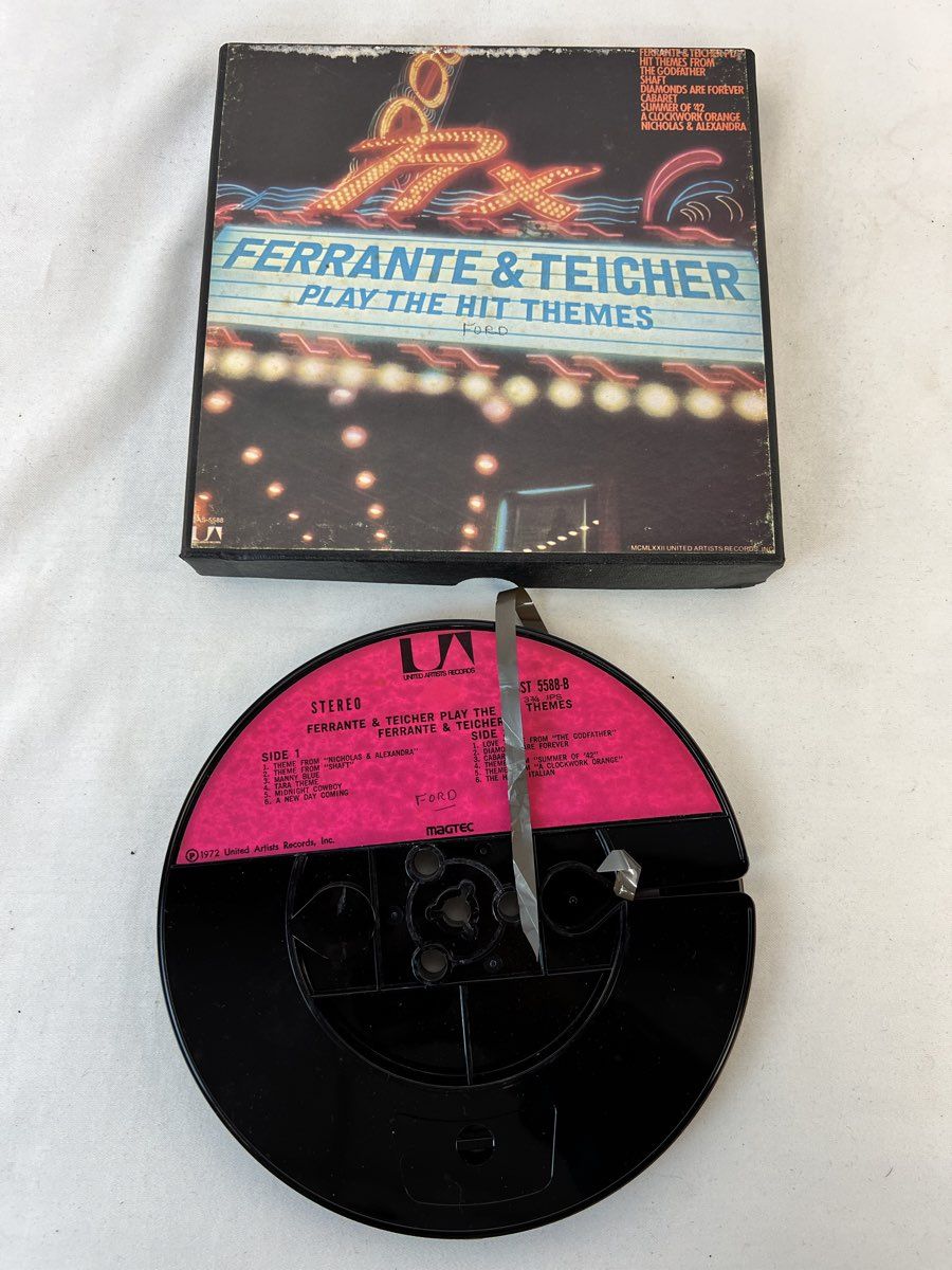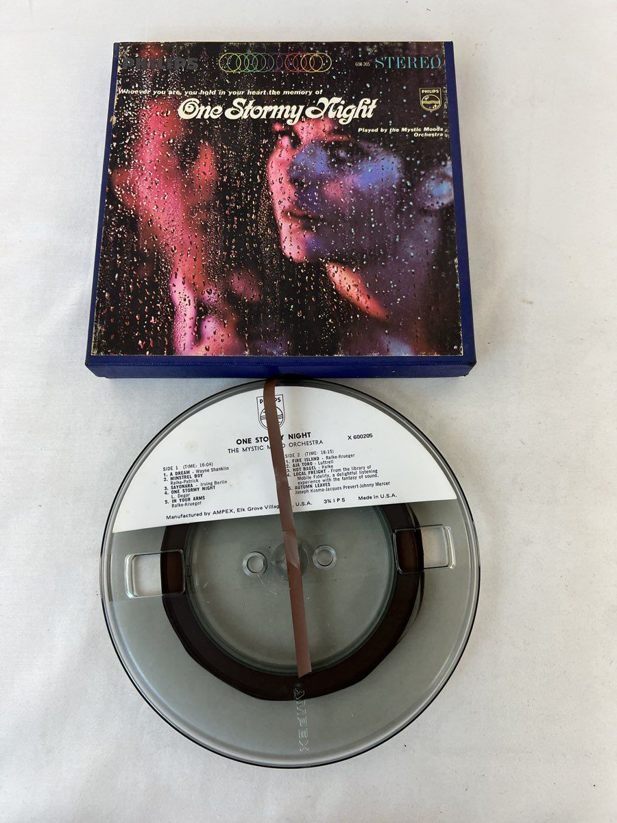 Reel To Reel Tapes Contains the Following: Mystic Moods Orchestra Stormy Weekend, Mystic Moods Orchestra One Stormy Night , Tape Mates Ford String Moods, Kai Winding The In Instrumentals, Henry Mancini A Warm Shade of Ivory & Ferrante & Teicher Play the Hit Themes