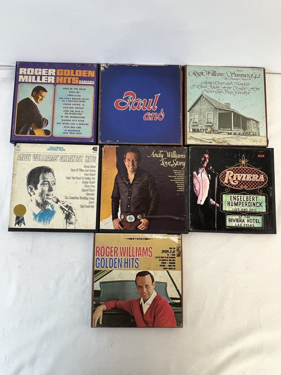 Vinyl Reel To Reel Item Paul Stookey, Roger Miller Golden Hits, Roger Williams Golden Hits, Roger Williams Summer of '42, Andy Williams Love Story, Andy Williams Greatest Hits & Engelbert Humperdindk Live at the Riviera