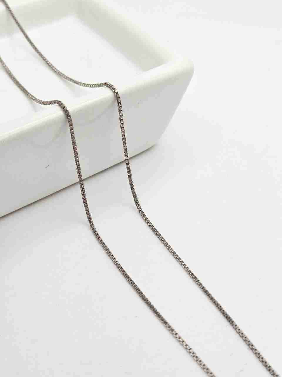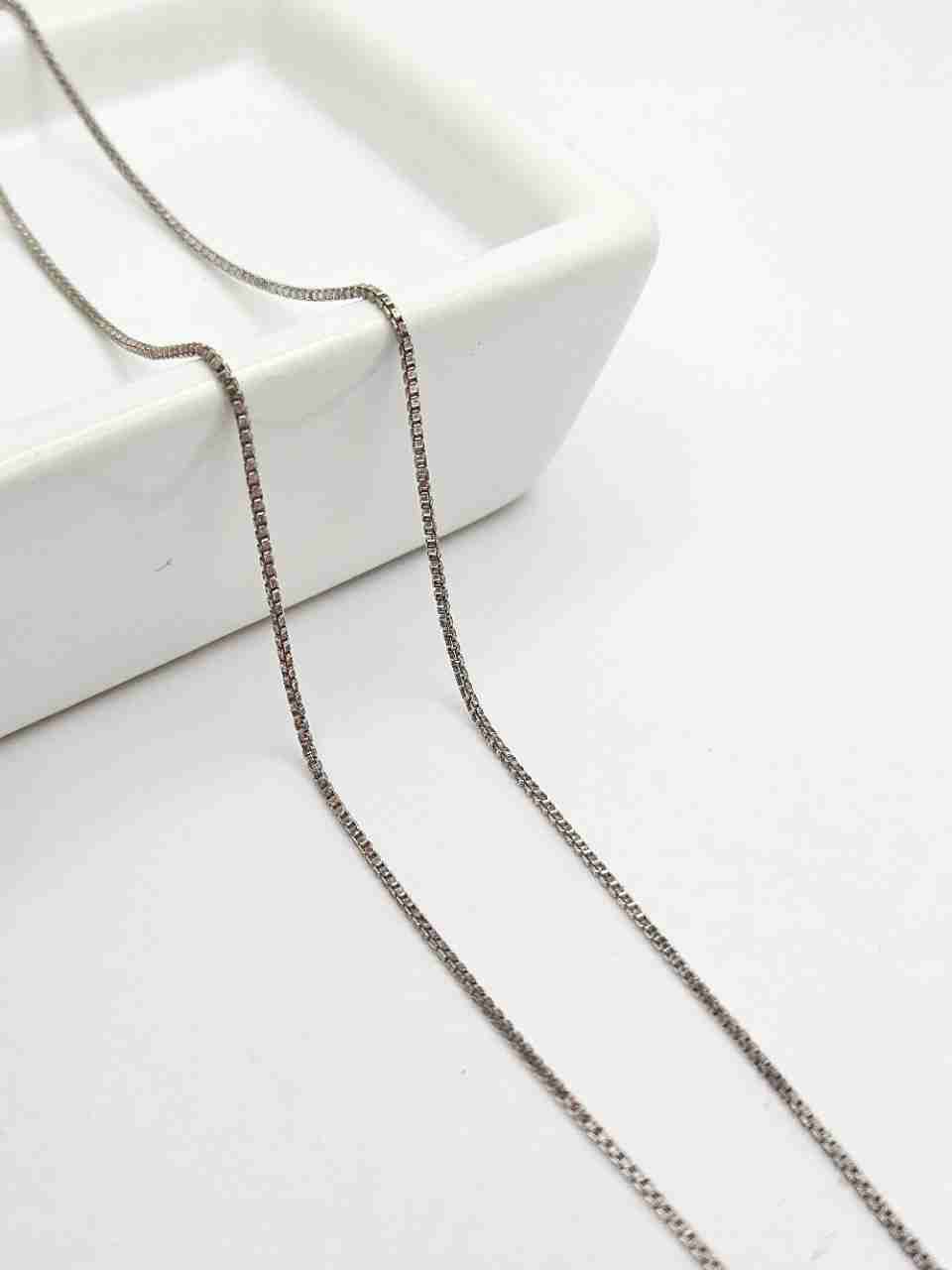 925 Sterling Silver Necklace Box Chain Choker 16 in. Vintage