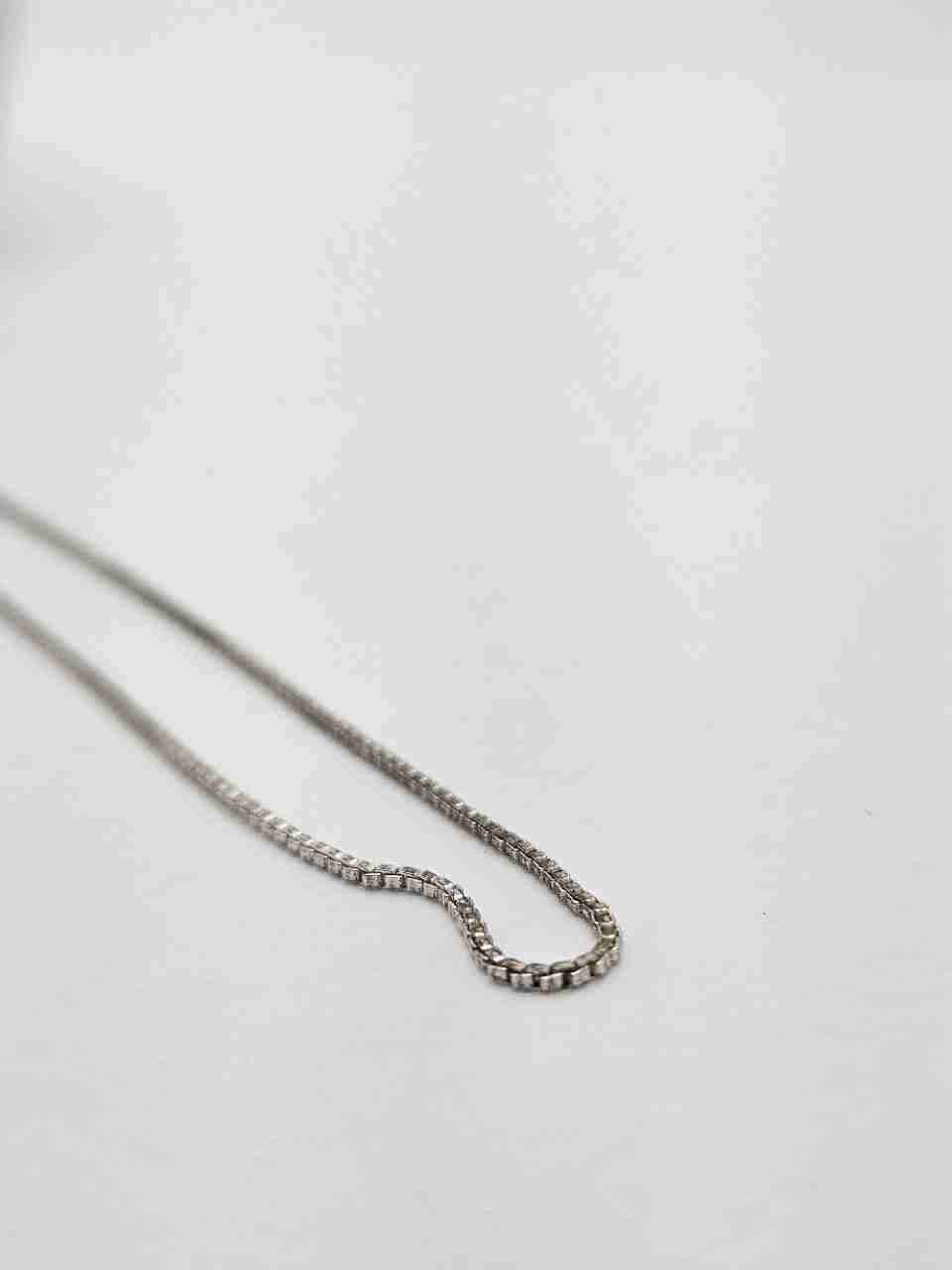 Delicate sterling box chain necklace with spring ring clasp, signed 925. Perfect for a pendant or on its own.
