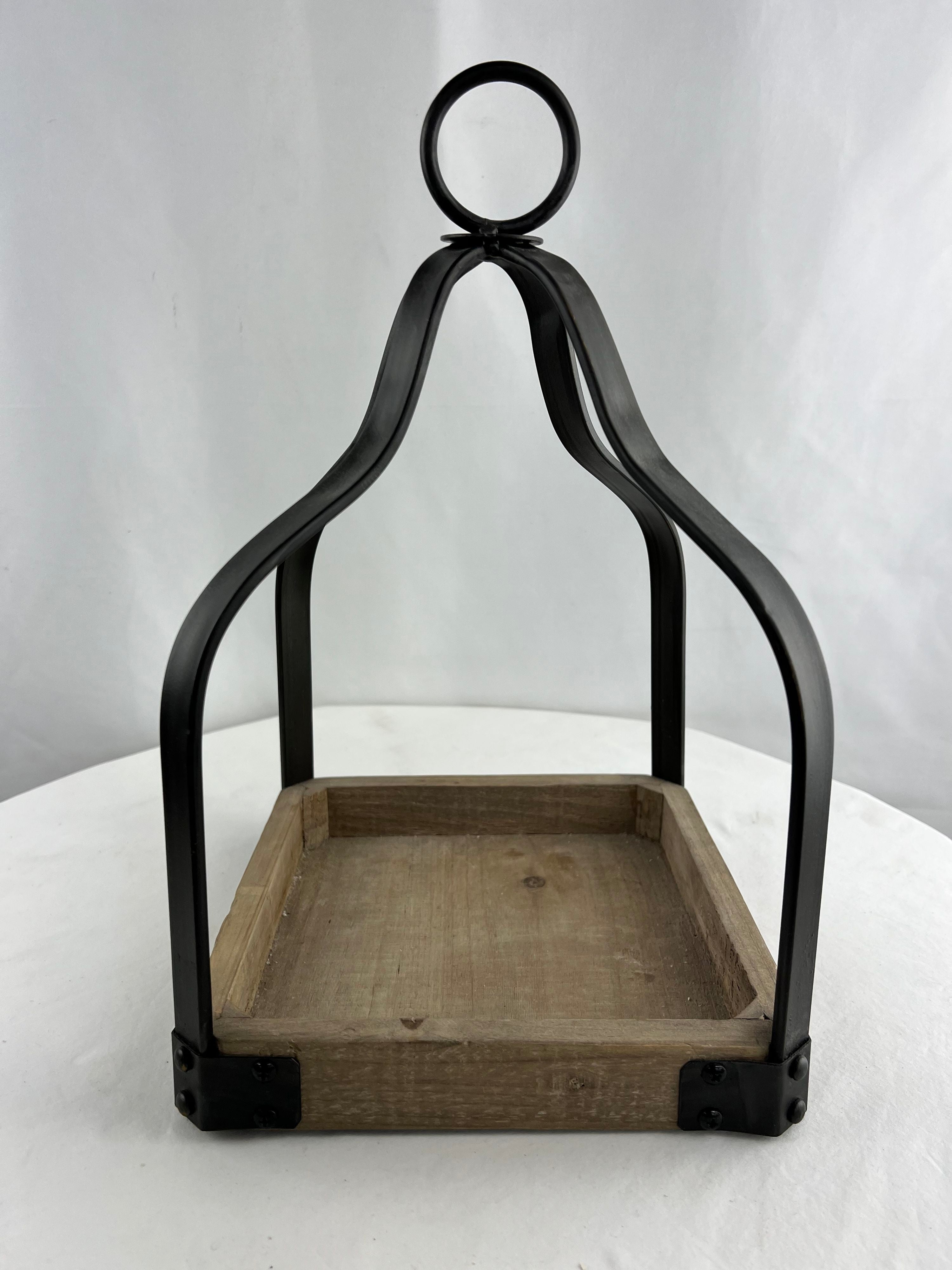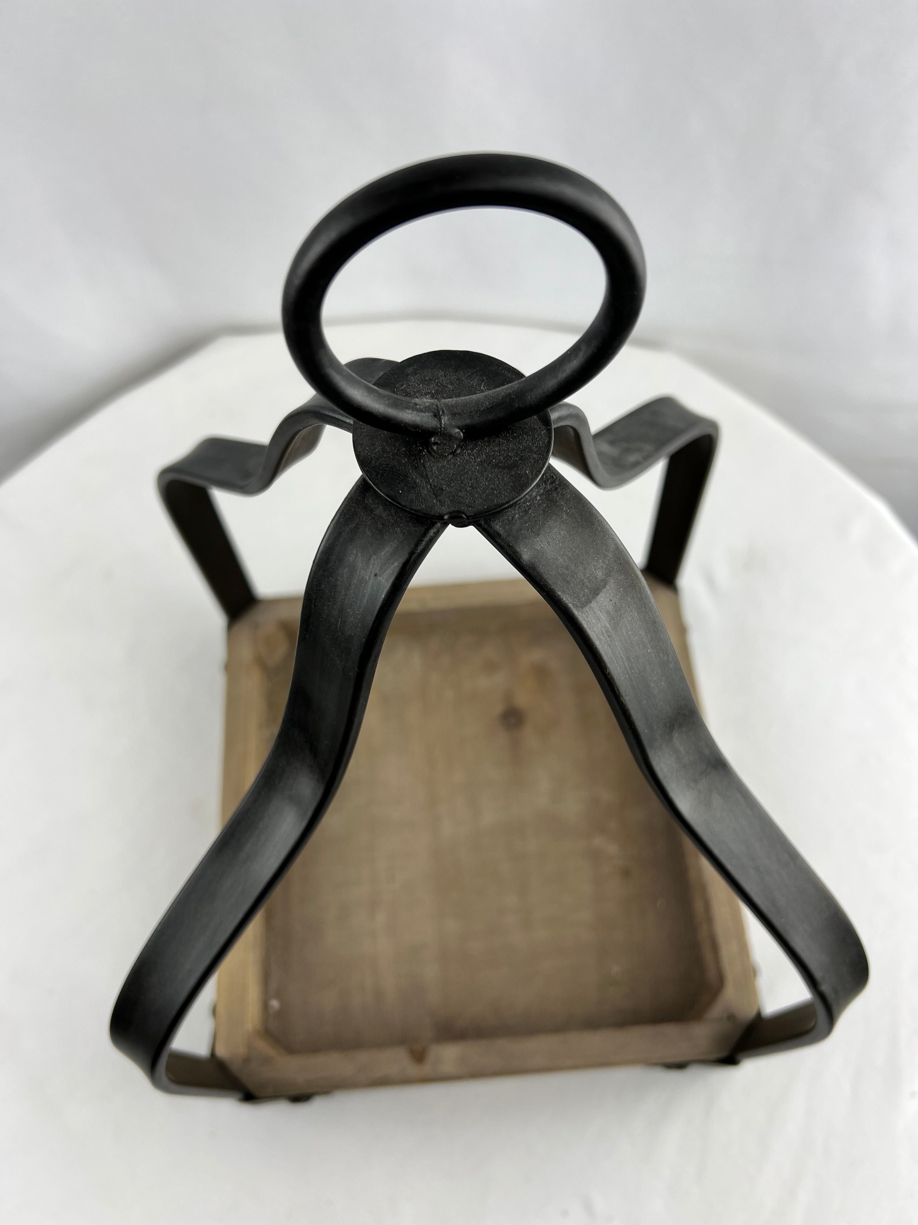 Farmhouse The Feathered Farmhouse Brown, Black Wood, Metal Tabletop Lantern