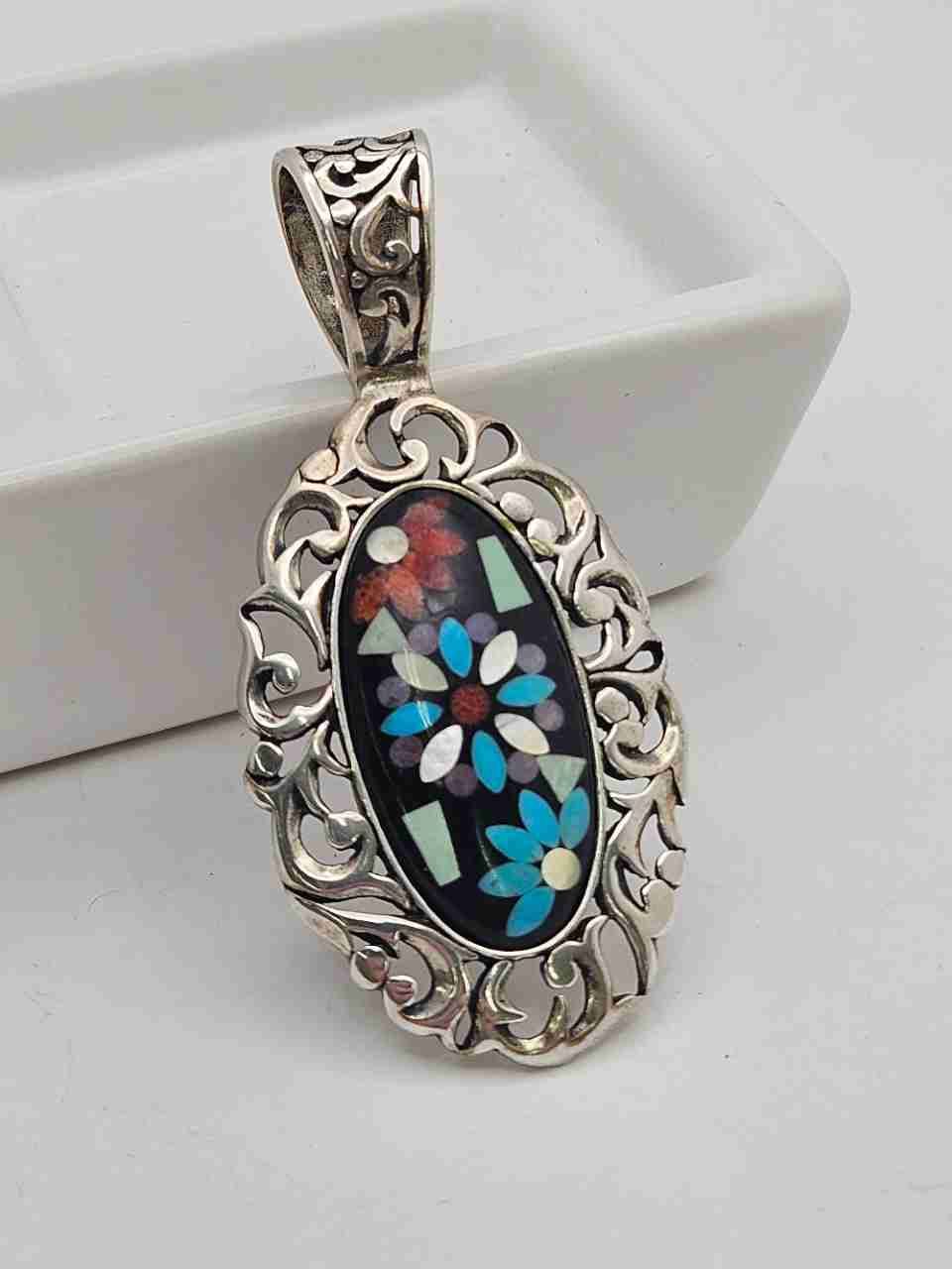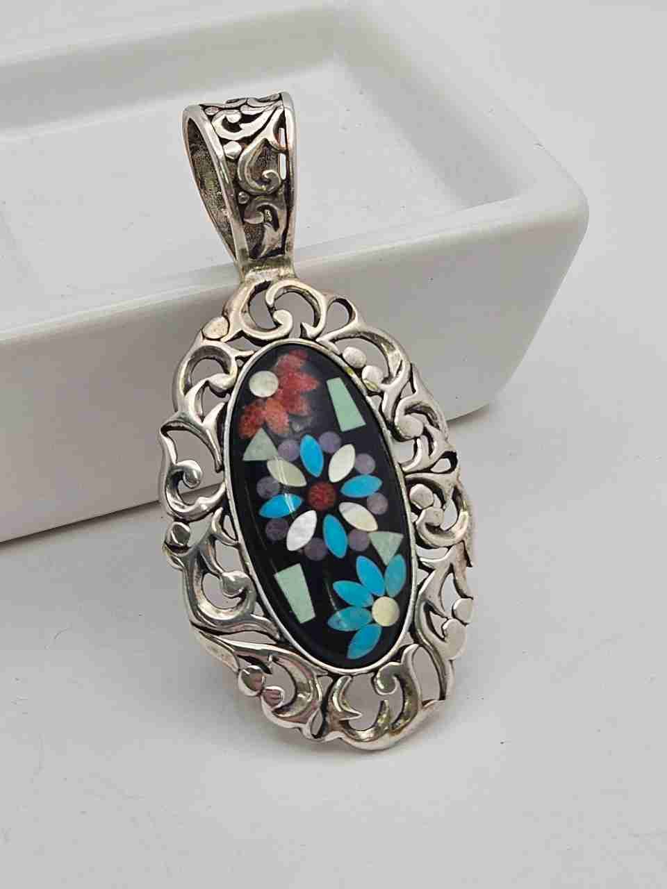 Carolyn Pollack 925 Sterling Silver Pendant Mosaic Inlay Filigree Native American Relios Retired