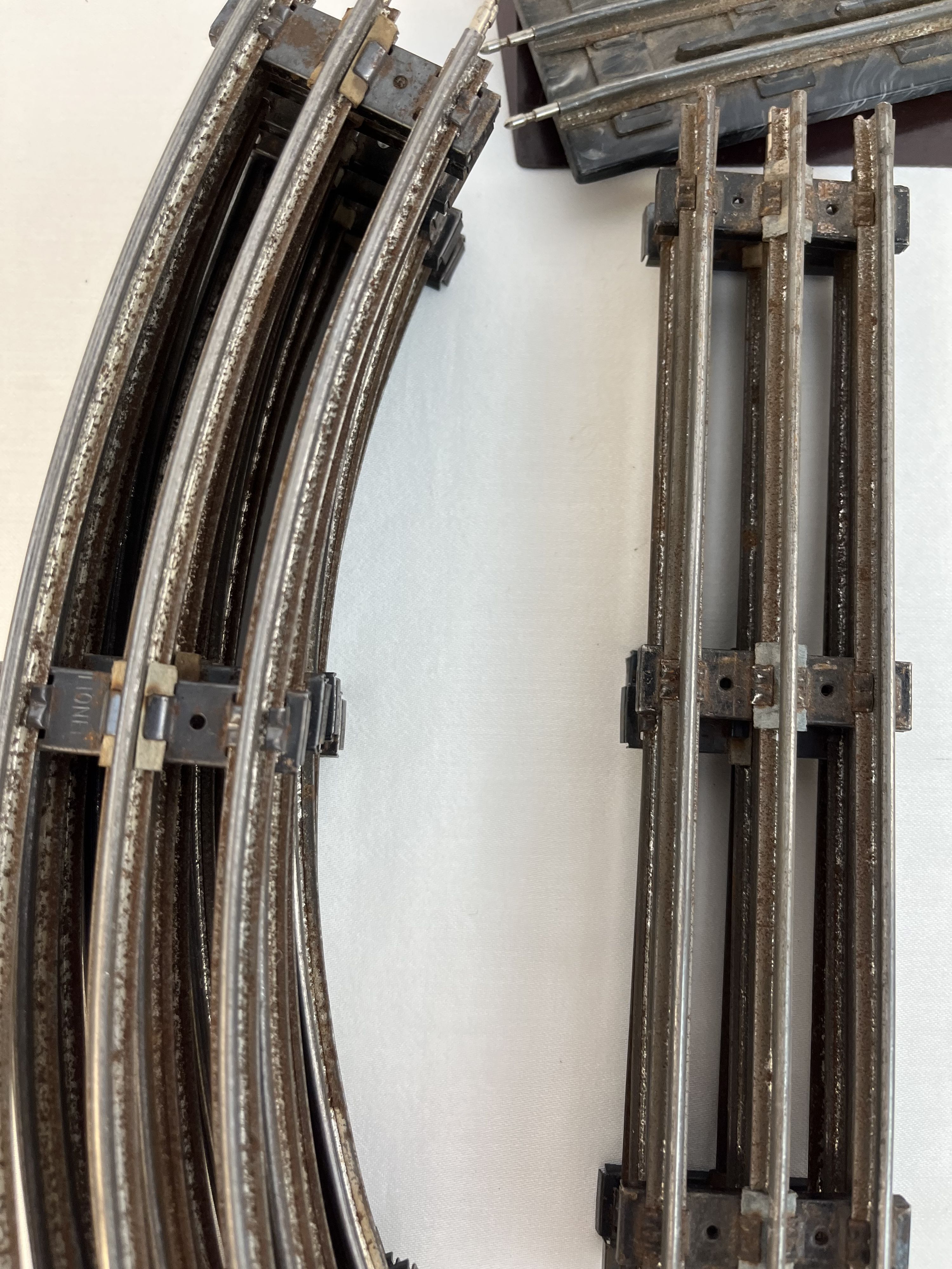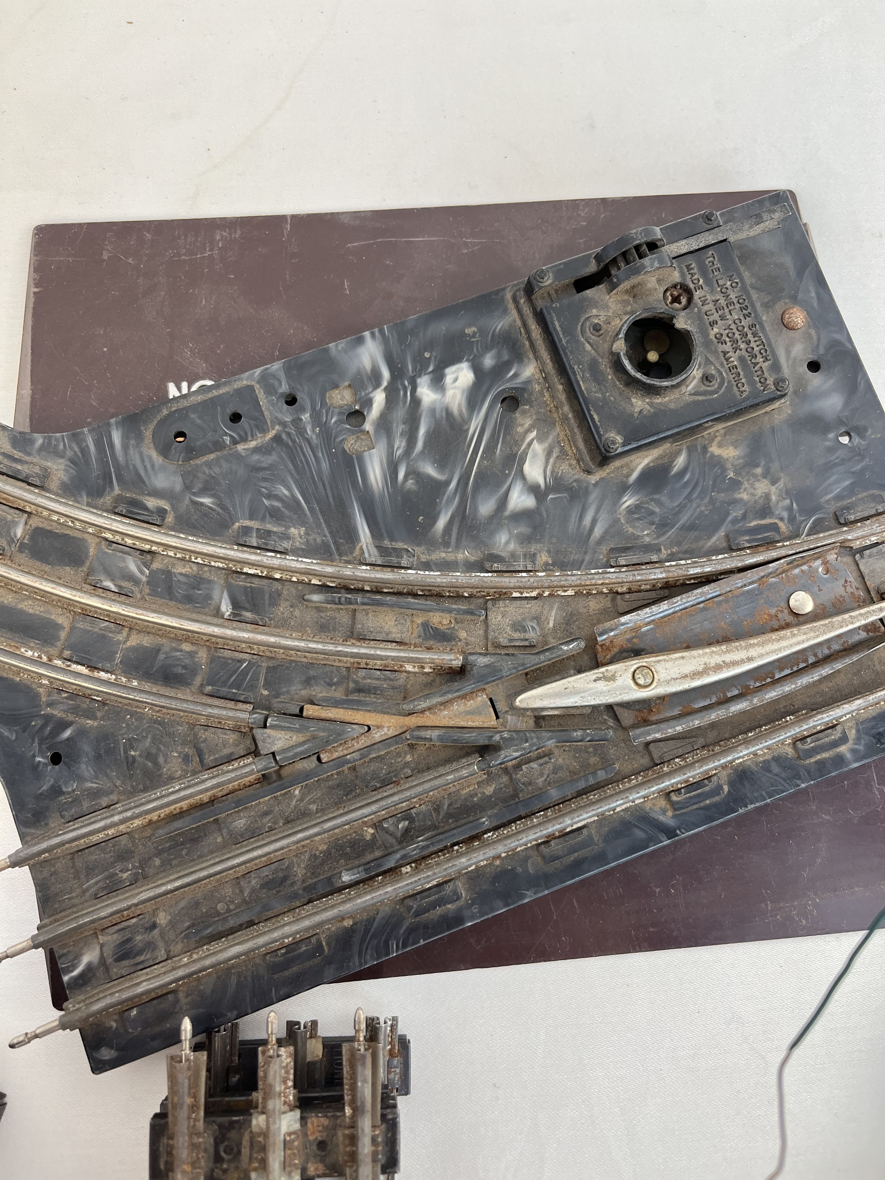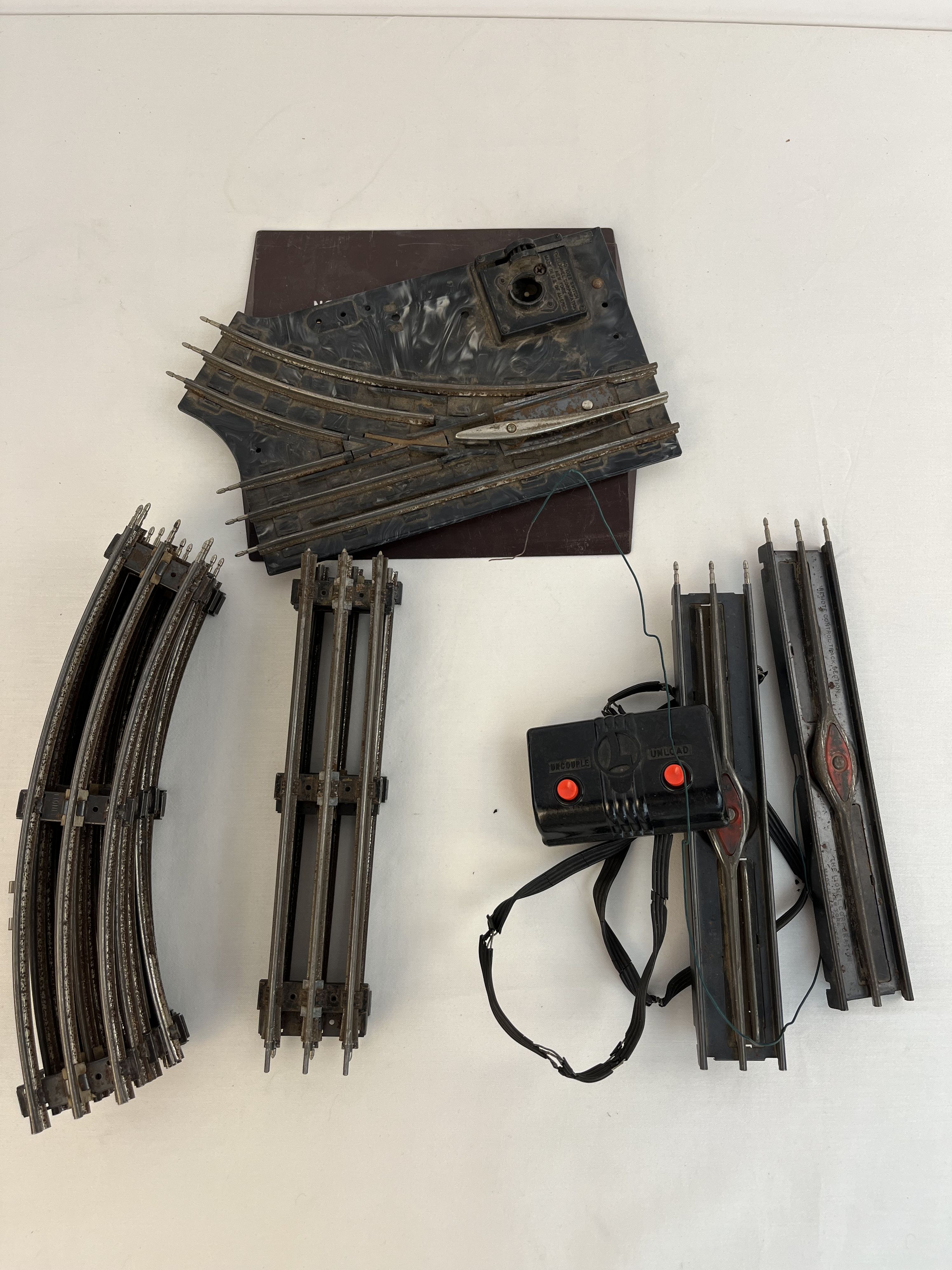 This set includes a variety of vintage O27 gauge train track pieces and accessories, perfect for collectors or hobbyists interested in restoration or sourcing parts: