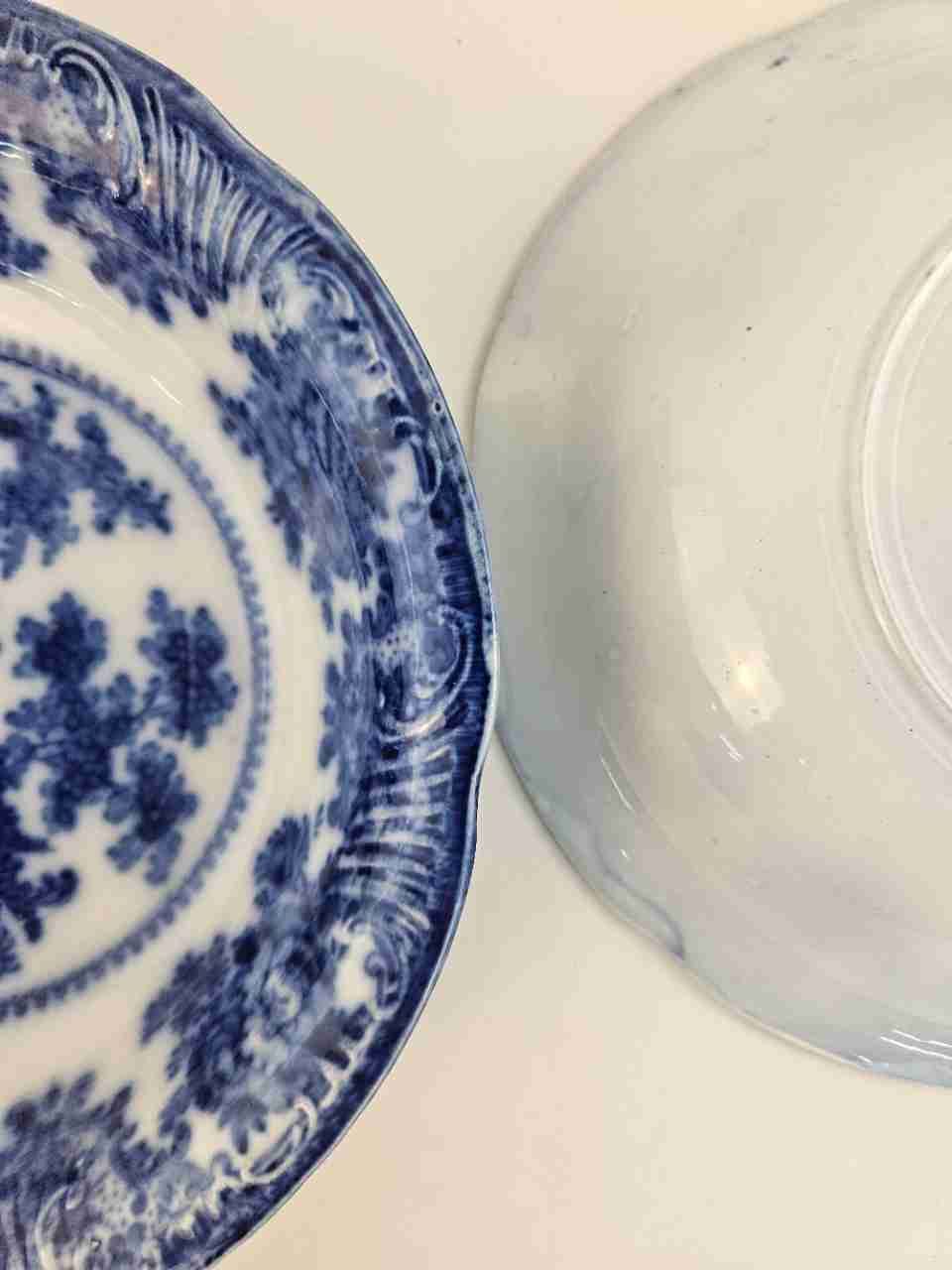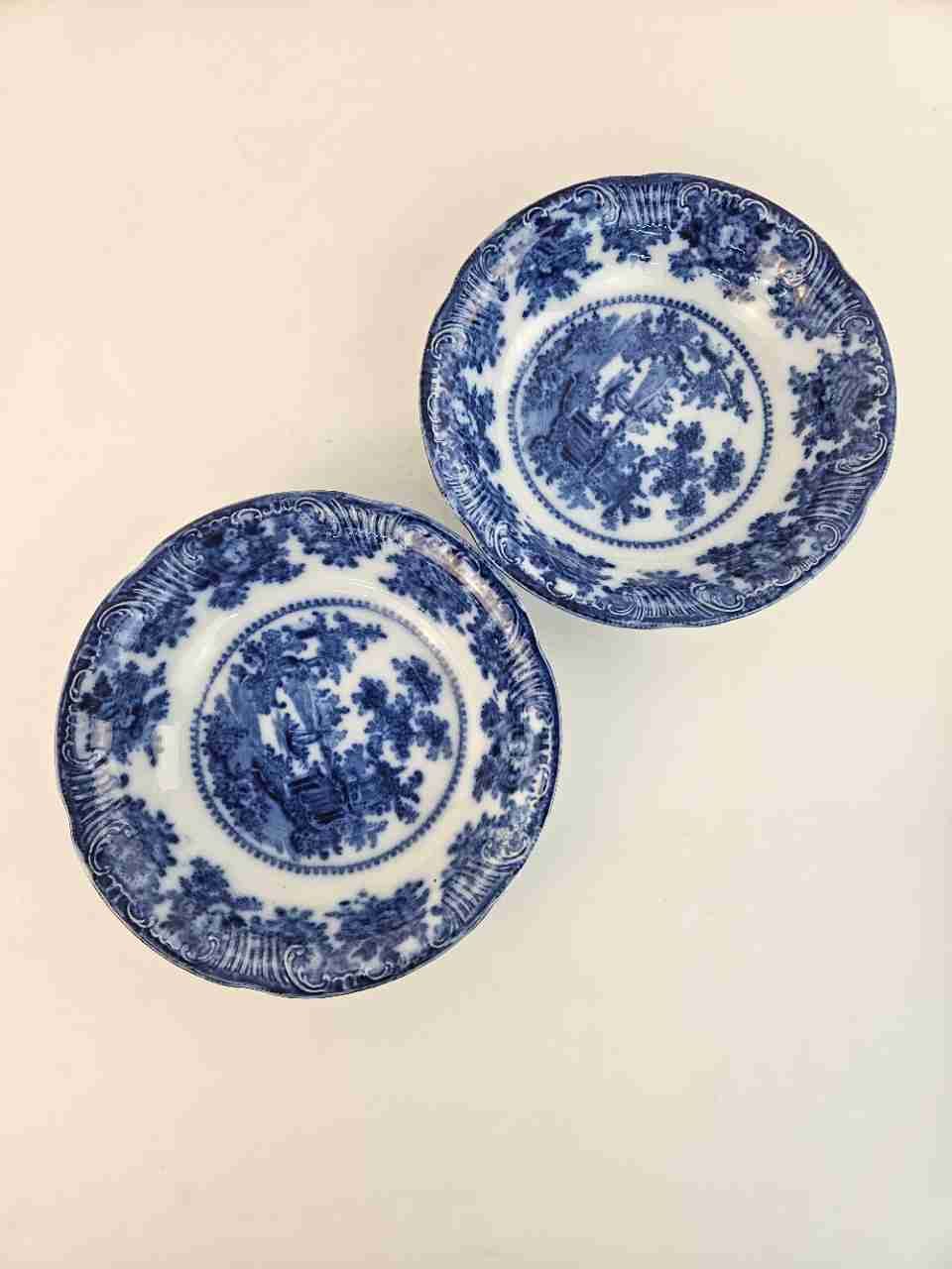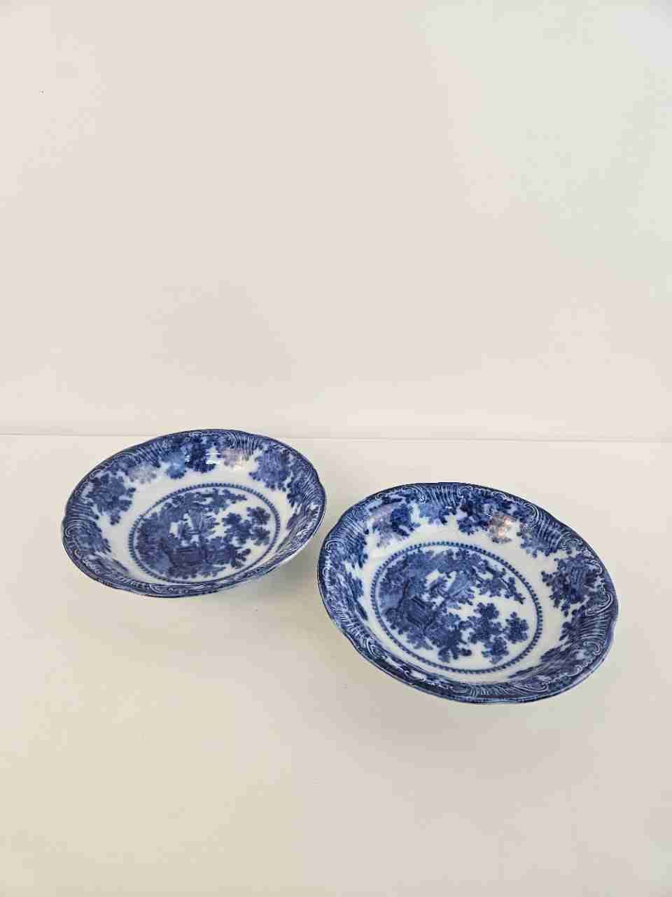 Pair of Rare Antique Adams Fairy Villas Flow Blue 10" Vegetable Bowl No Marking