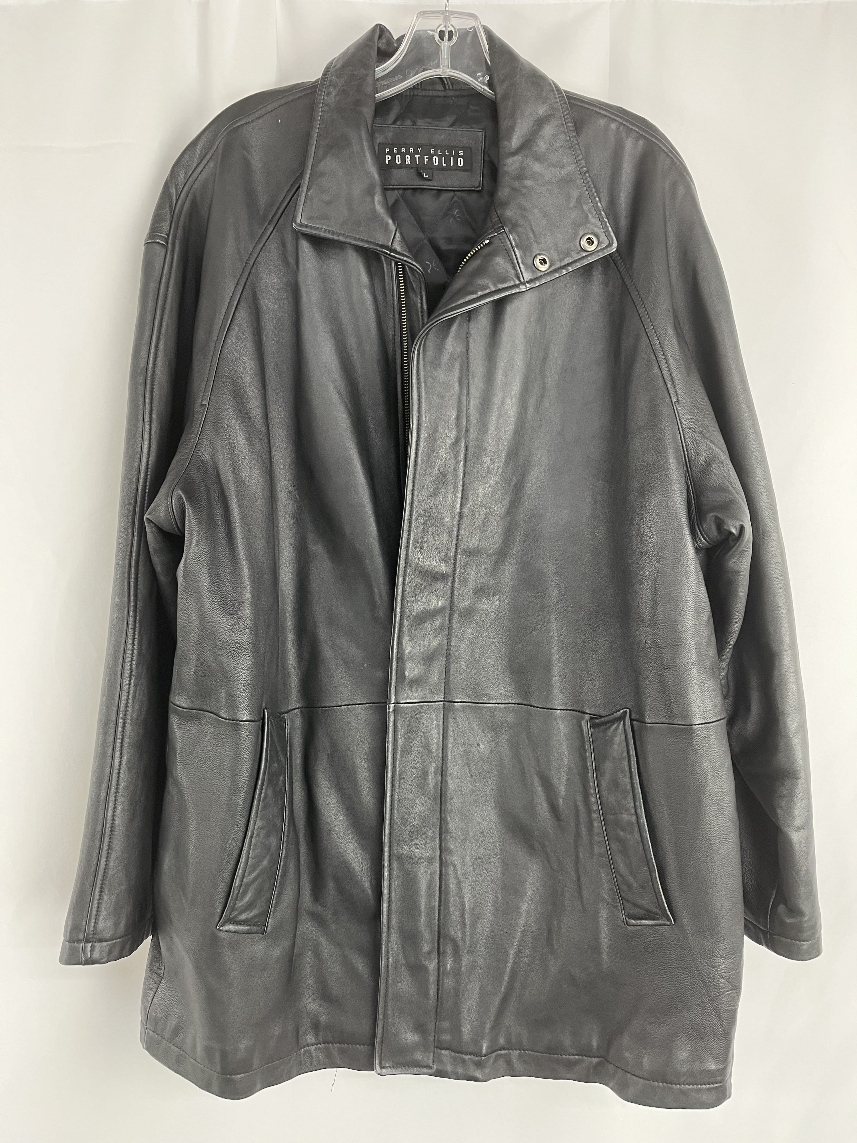 Perry Ellis Portfolio Genuine Leather Jacket Black Men's Large