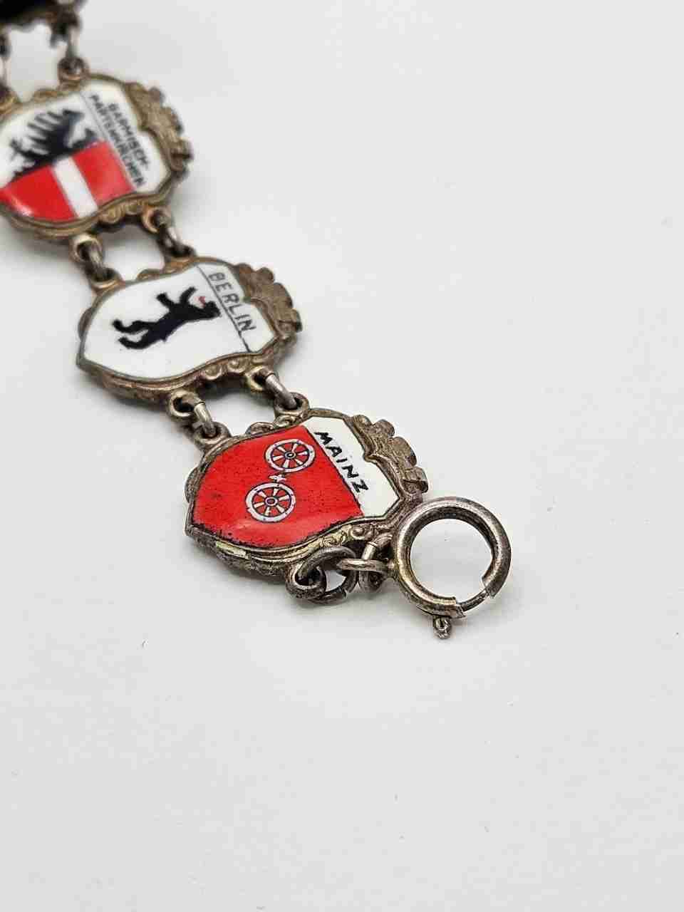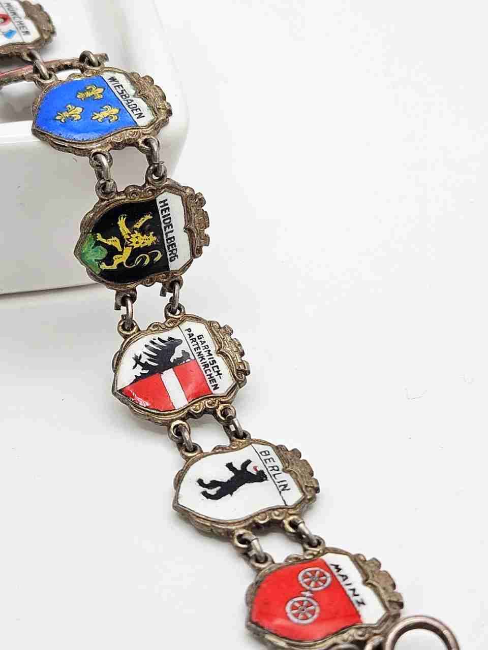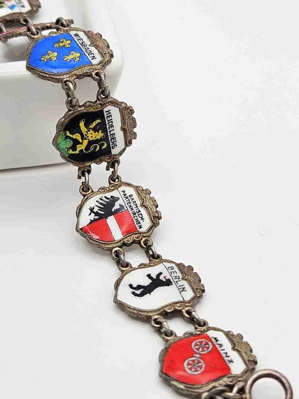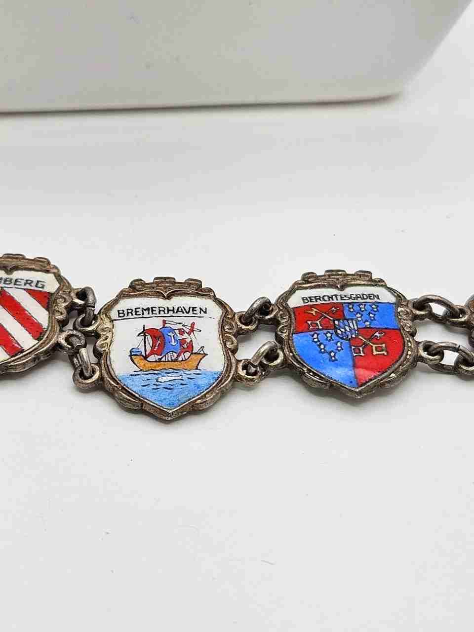 REU 800 Silver Bracelet Vintage Enamel German Travel Flags European