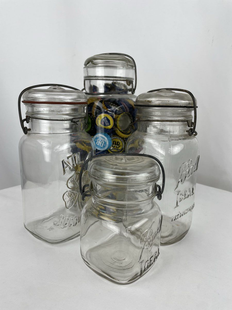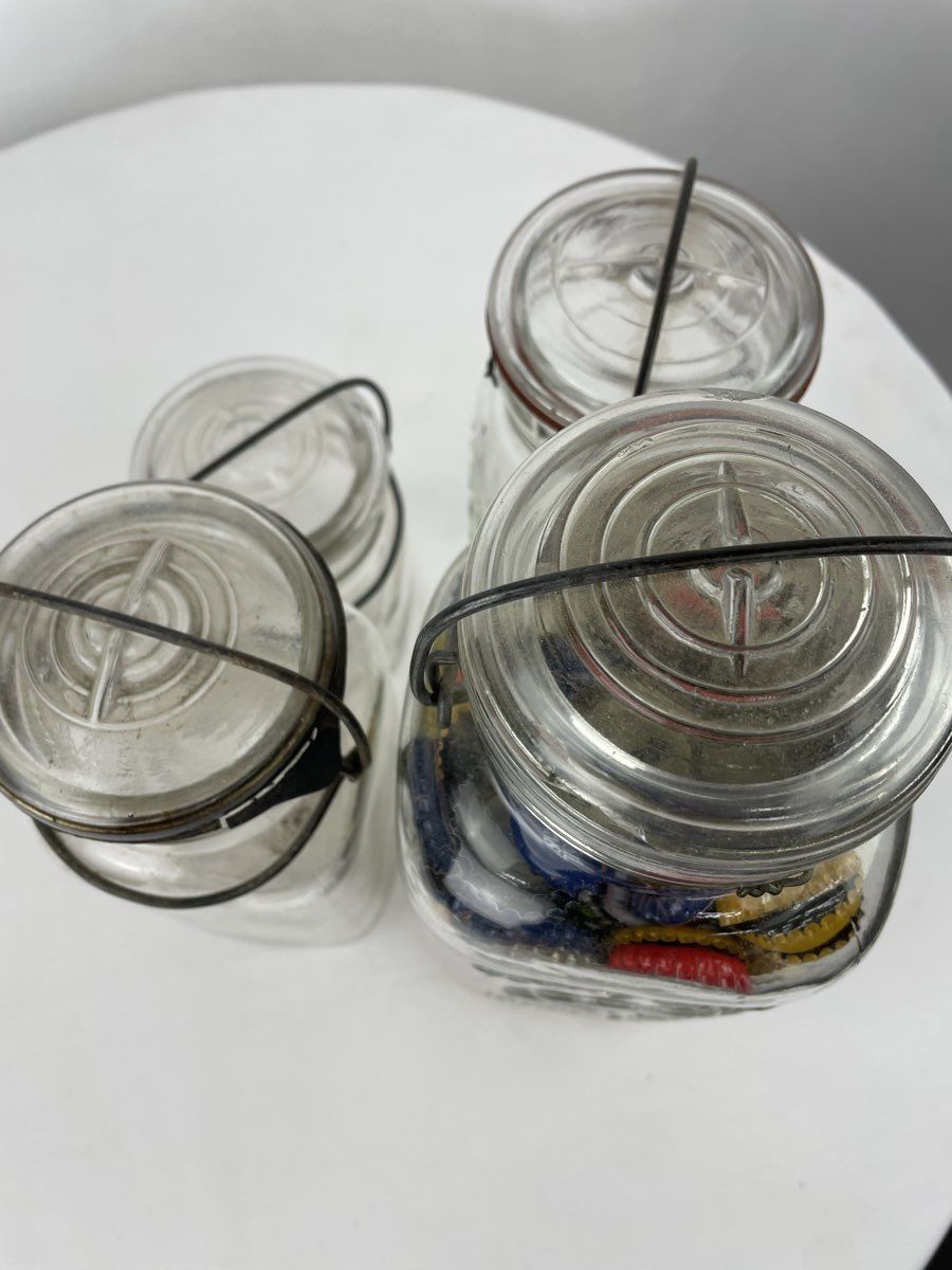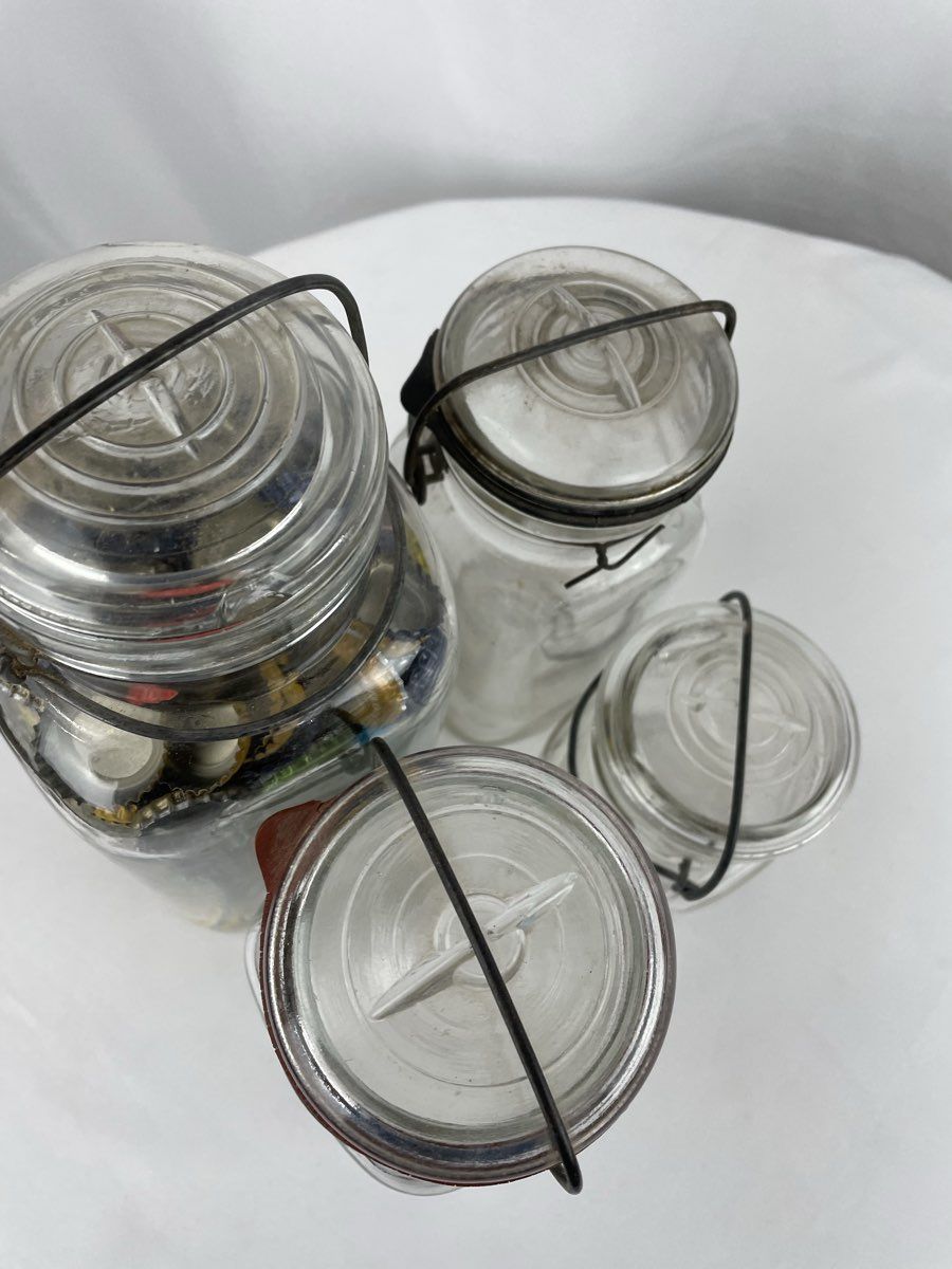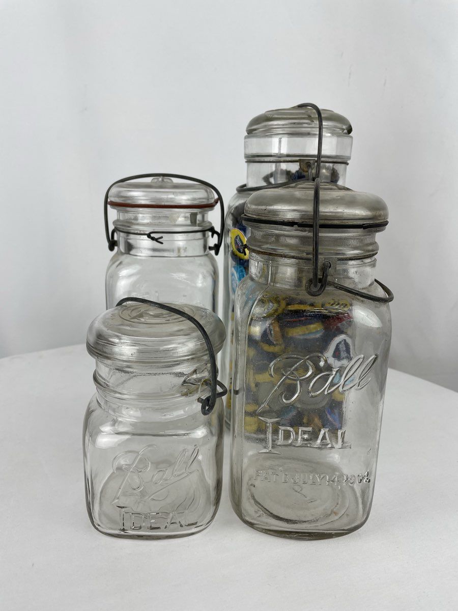 Set of 4 Vintage Glass Mason Jars w Lid Wire Bail Various Sizes