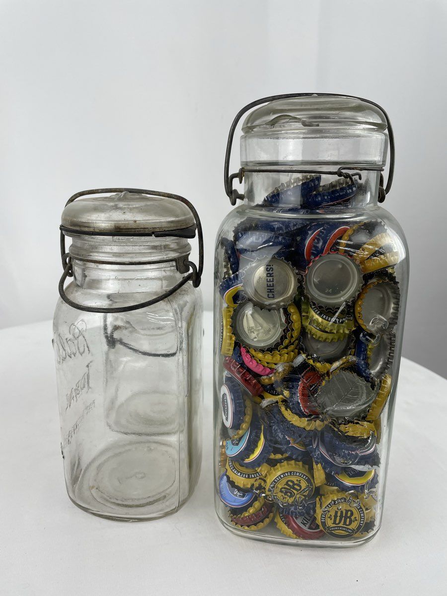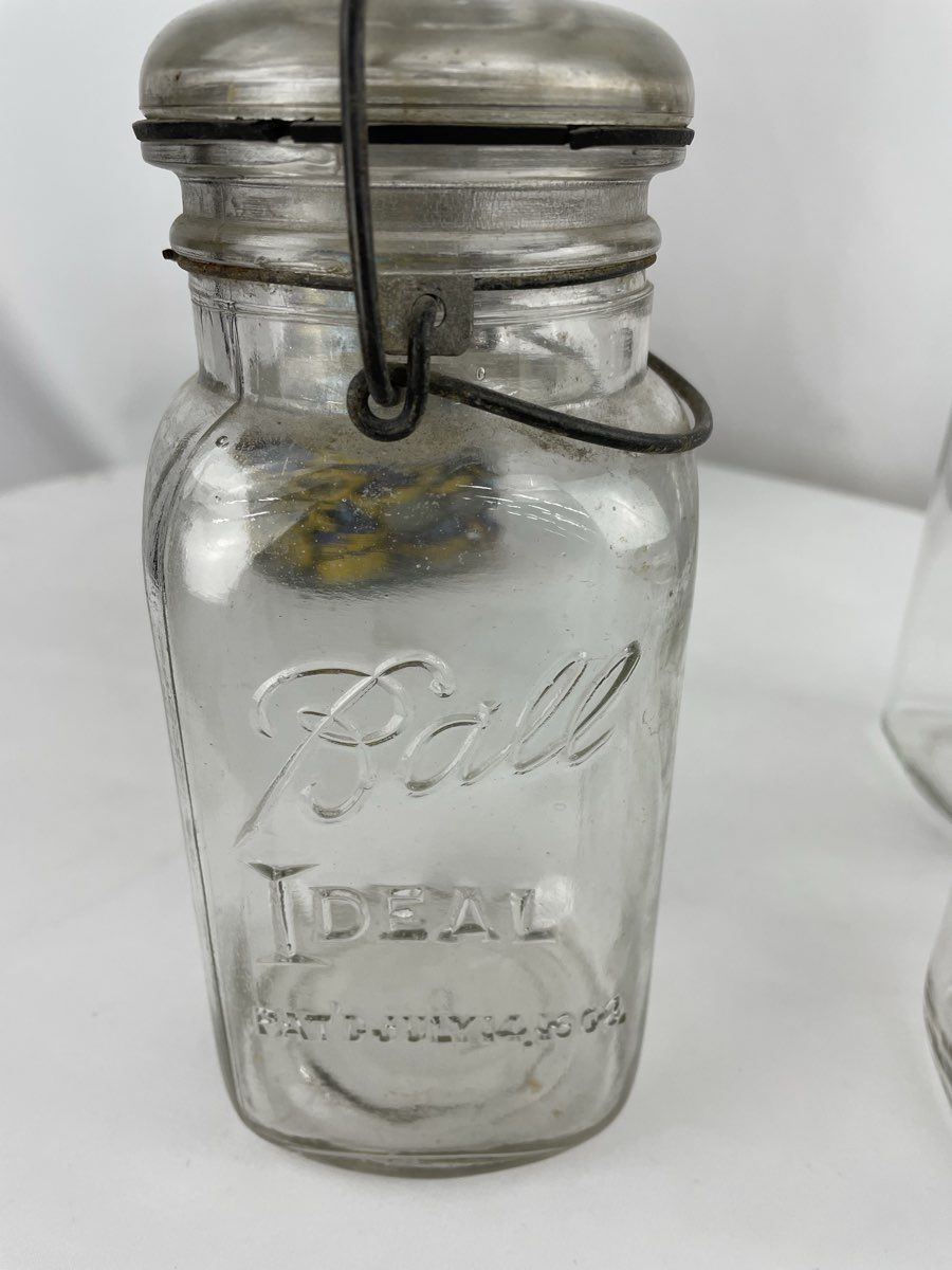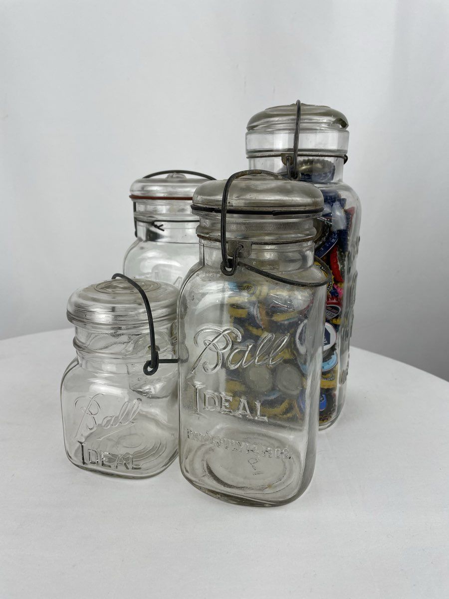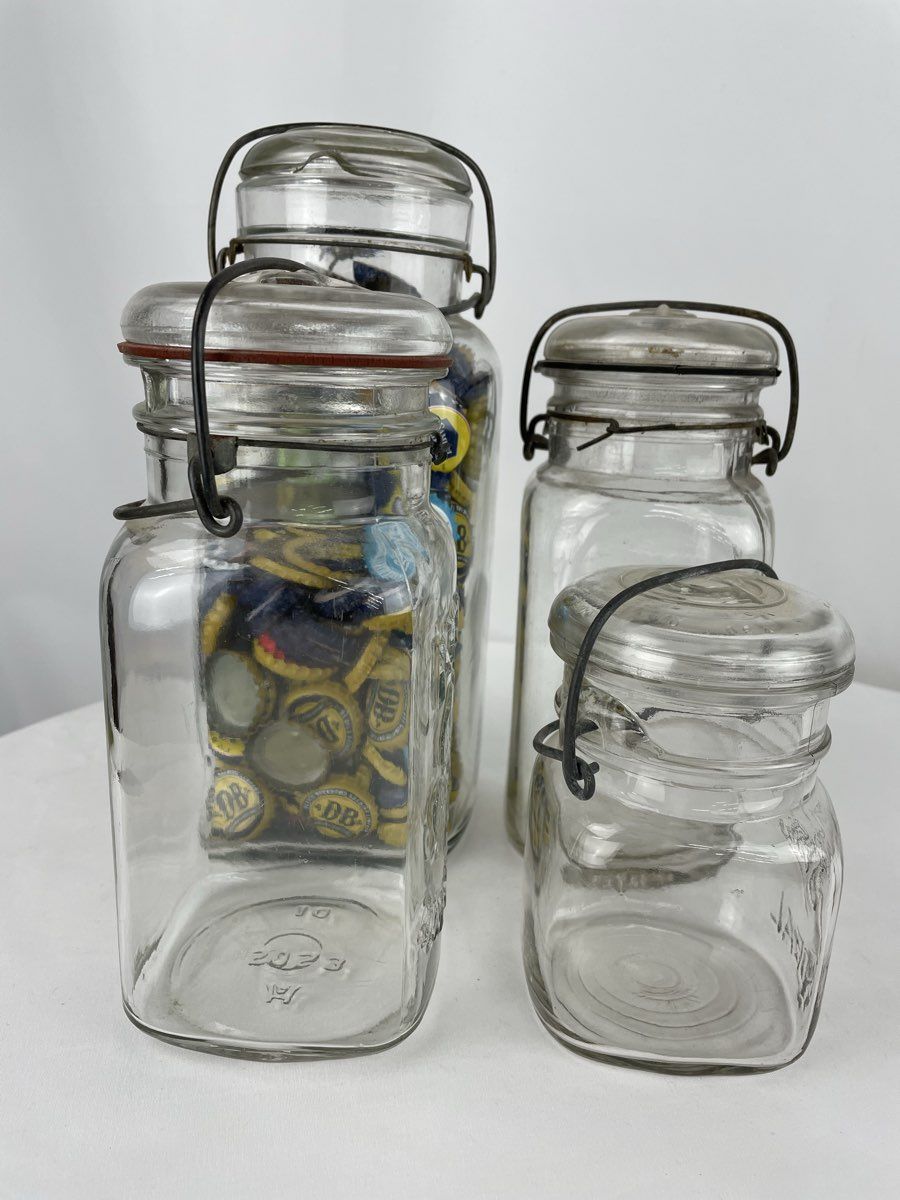 Set of 4 Vintage Glass Mason Jars w Lid Wire Bail Various Sizes