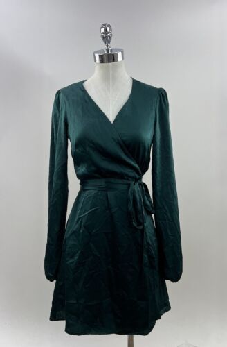 The woven fabrication of this Show Me Your Mumu Nola Mini Dress gives a luxurious look while the wrap silhouette offers flattering style. Surplice V-neckline and blouson long sleeves. Self-tie at left waist. Straight hemline. 100% polyester; Lining: 100% polyester. Hand wash. Can also be dry cleaned. Made in the USA and imported.