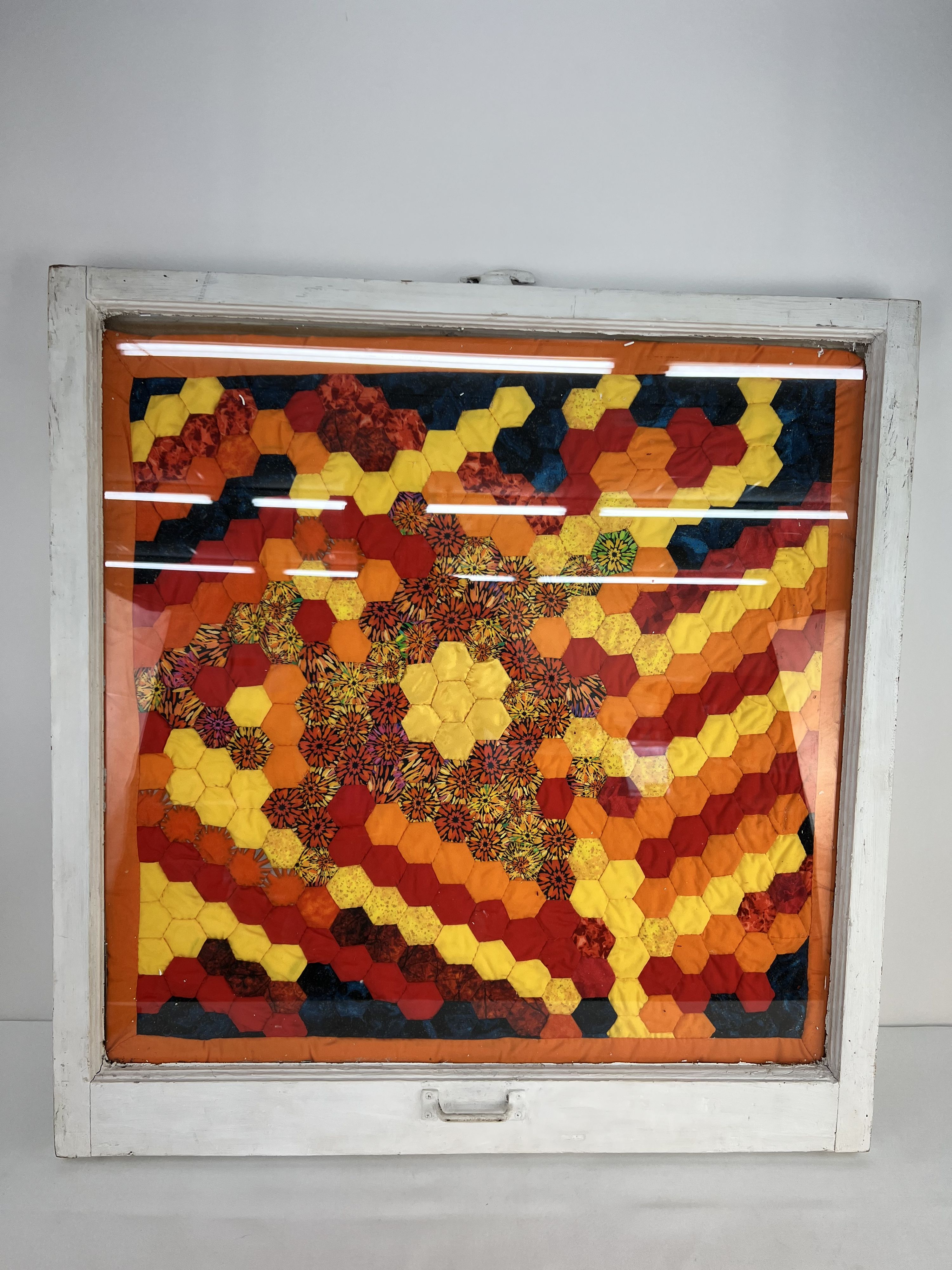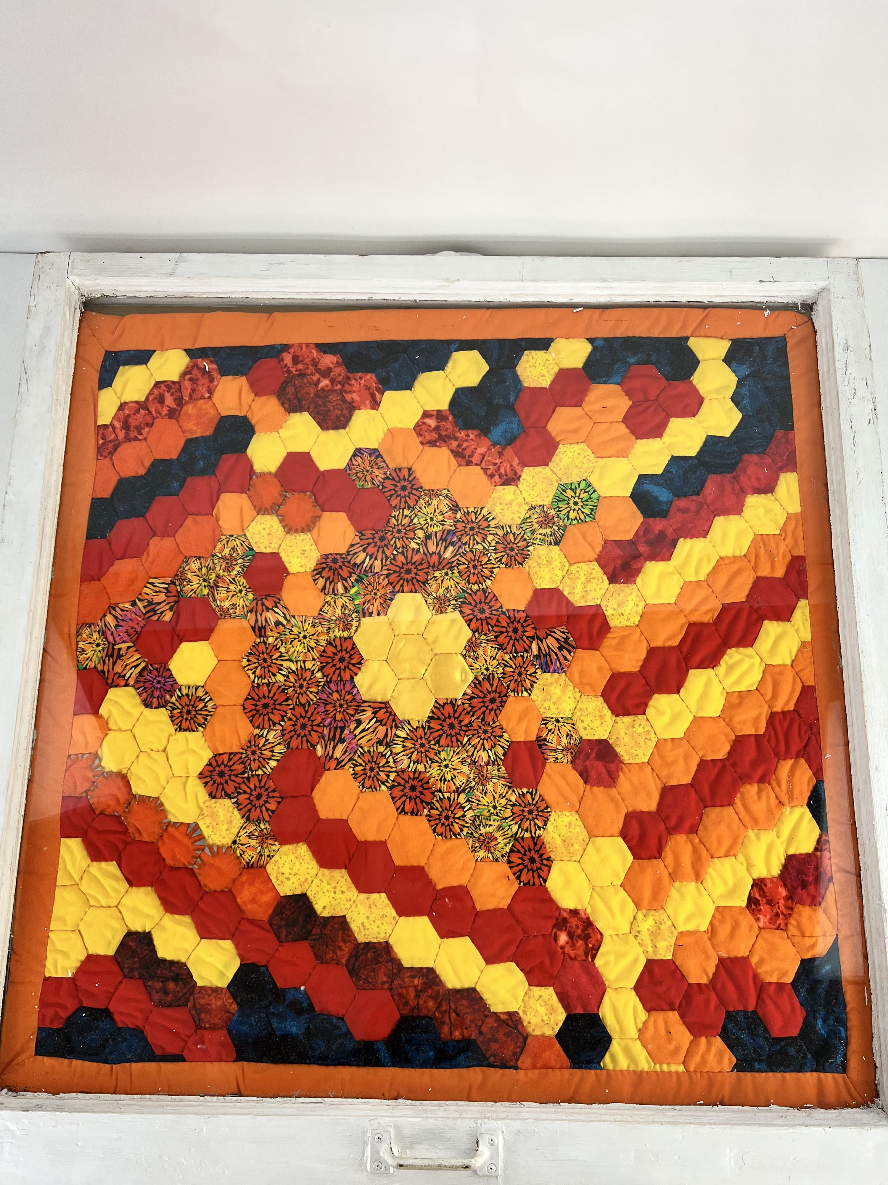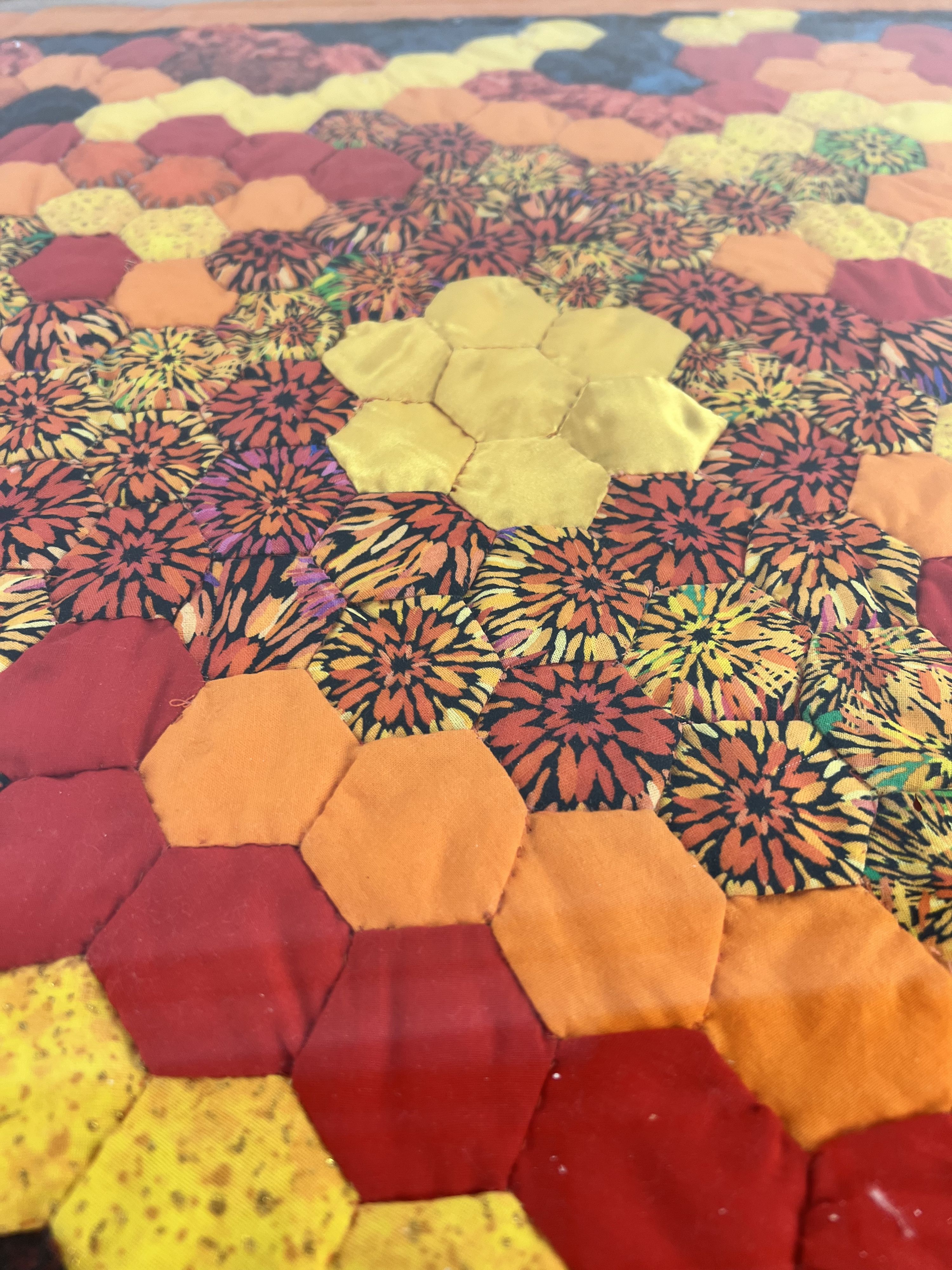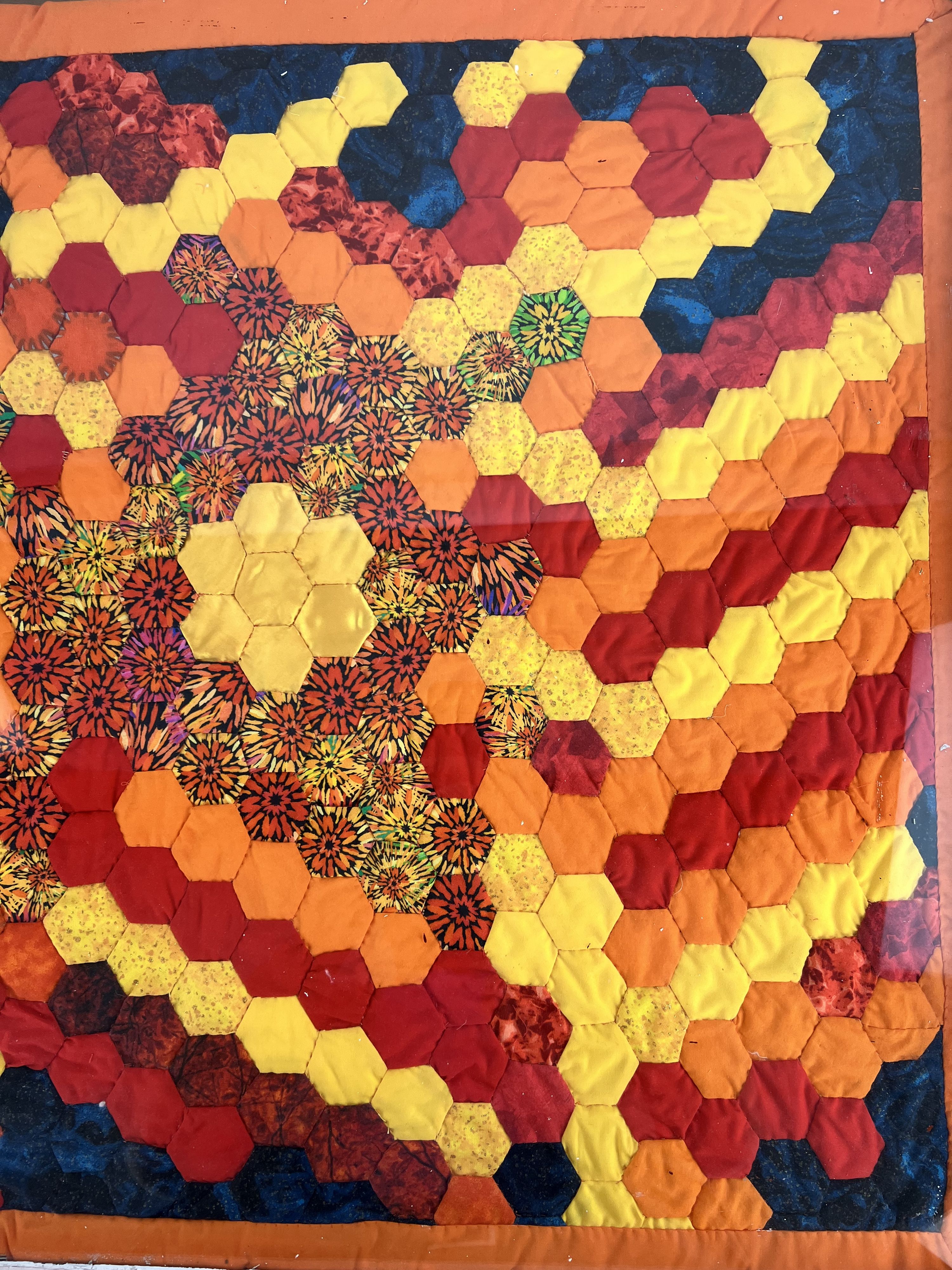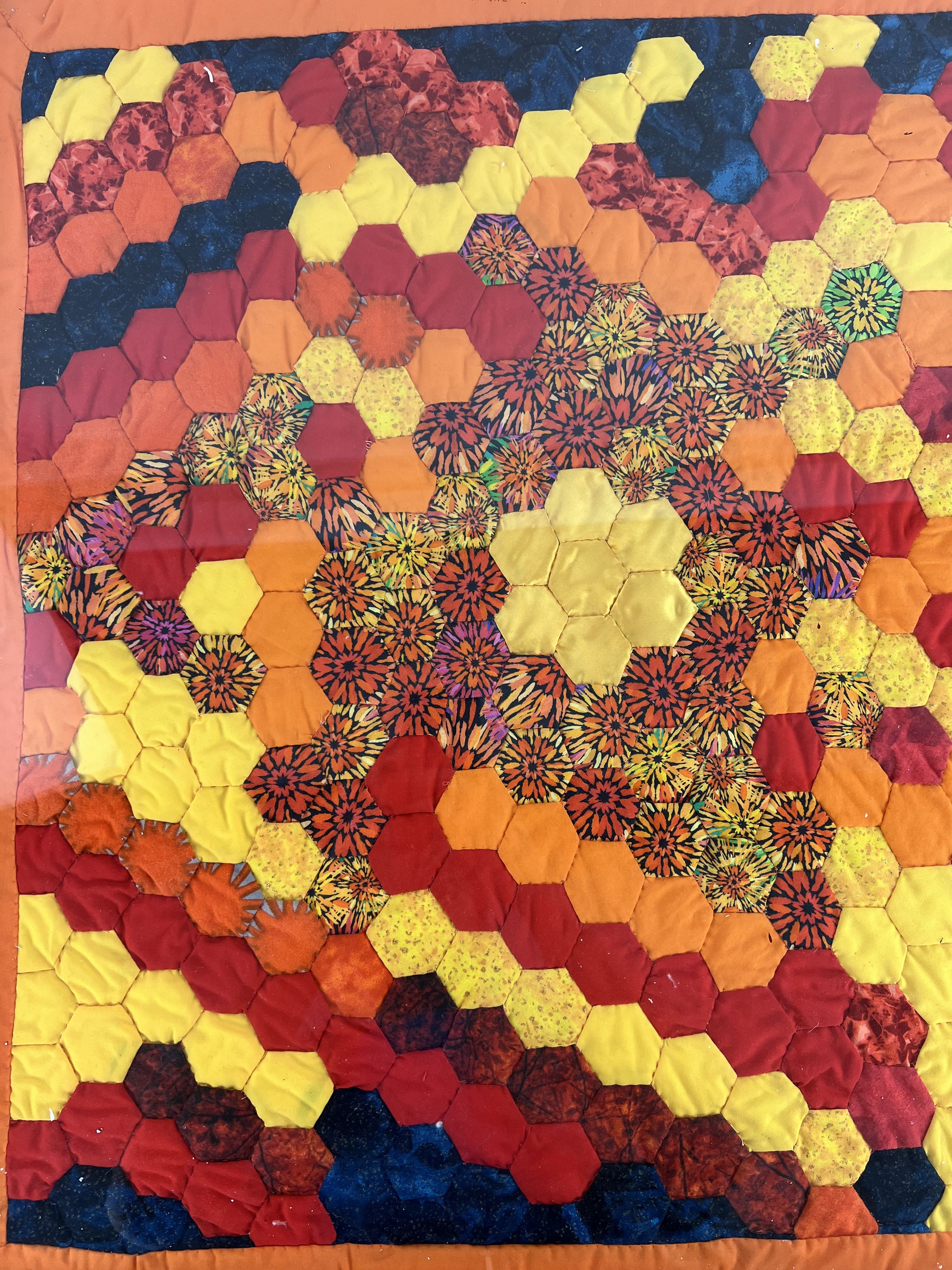 Hexagon Handcrafted Orange Fabric Quilt Wall Hanging Hexagonal