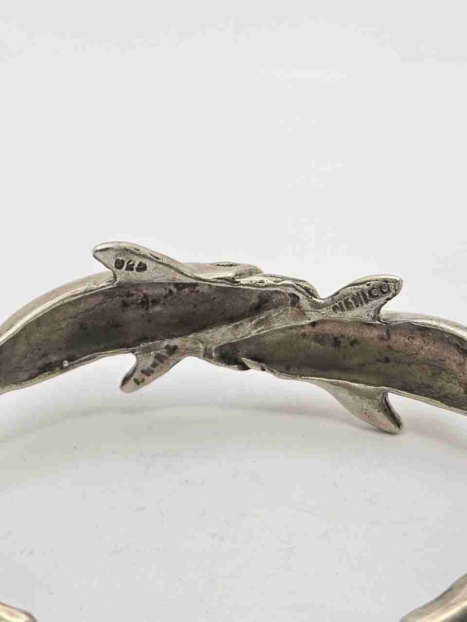 Taxco Mexico 925 Sterling Silver Bracelet Dolphin Bangle Cuff Signed Vintage