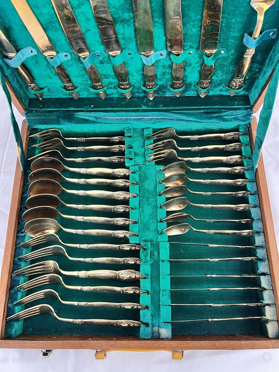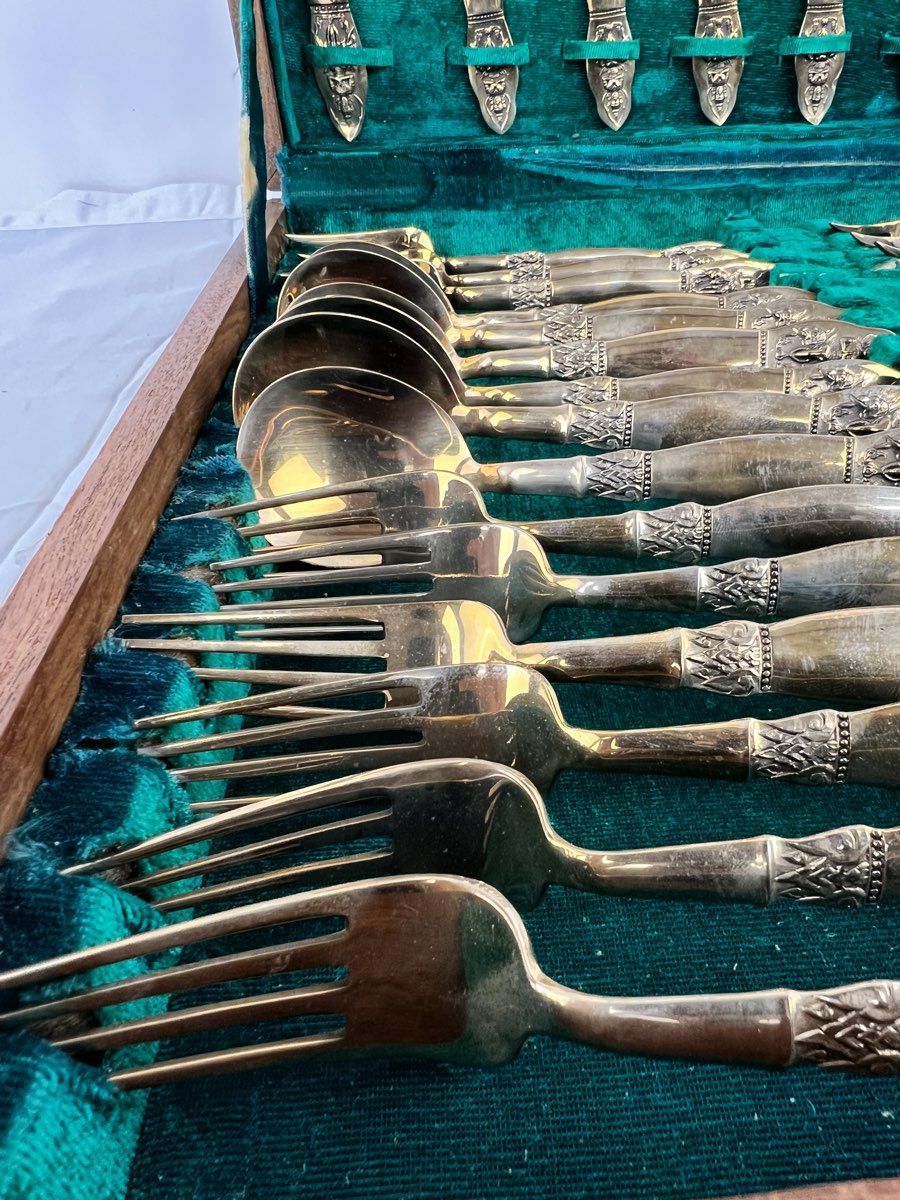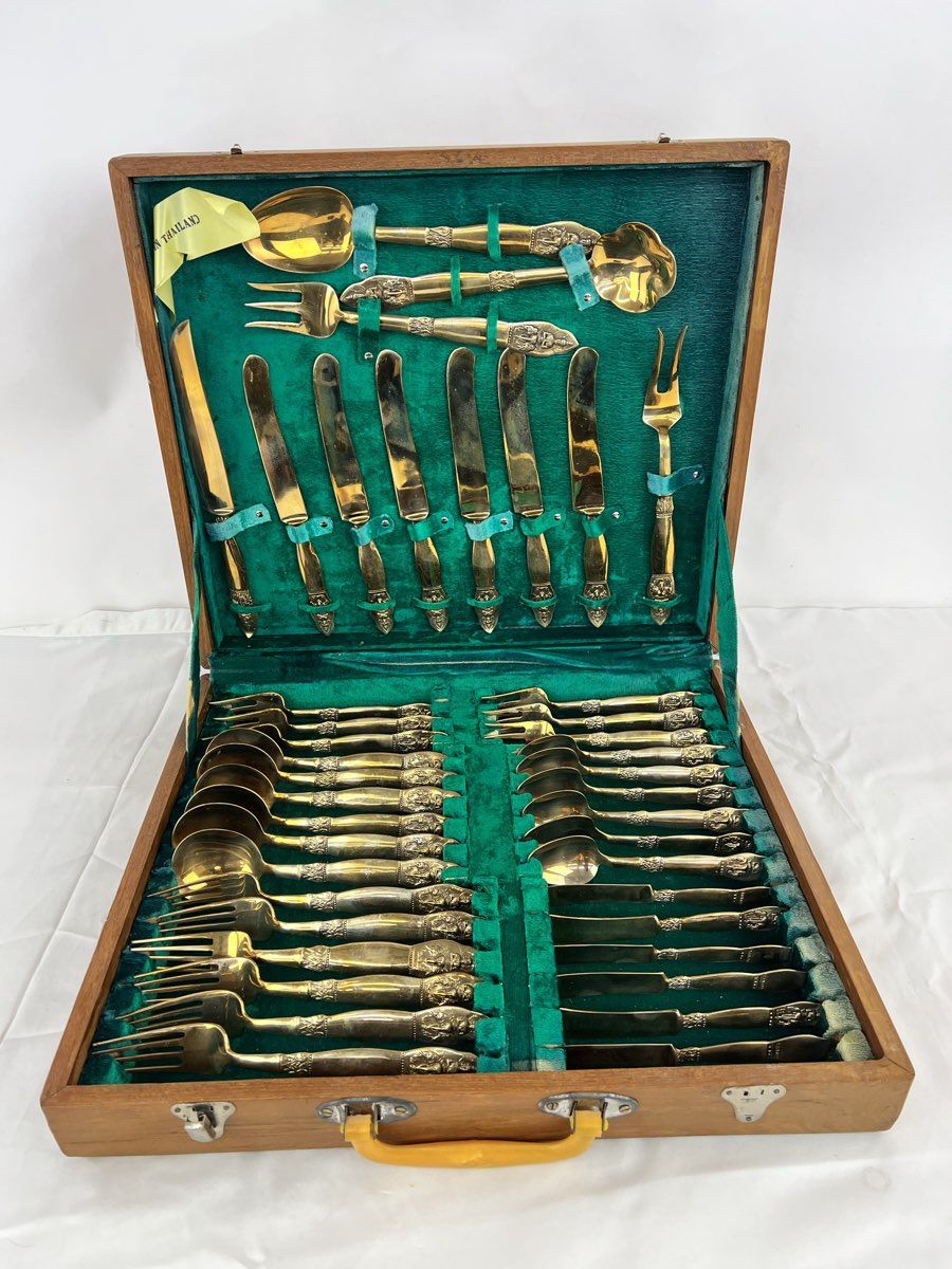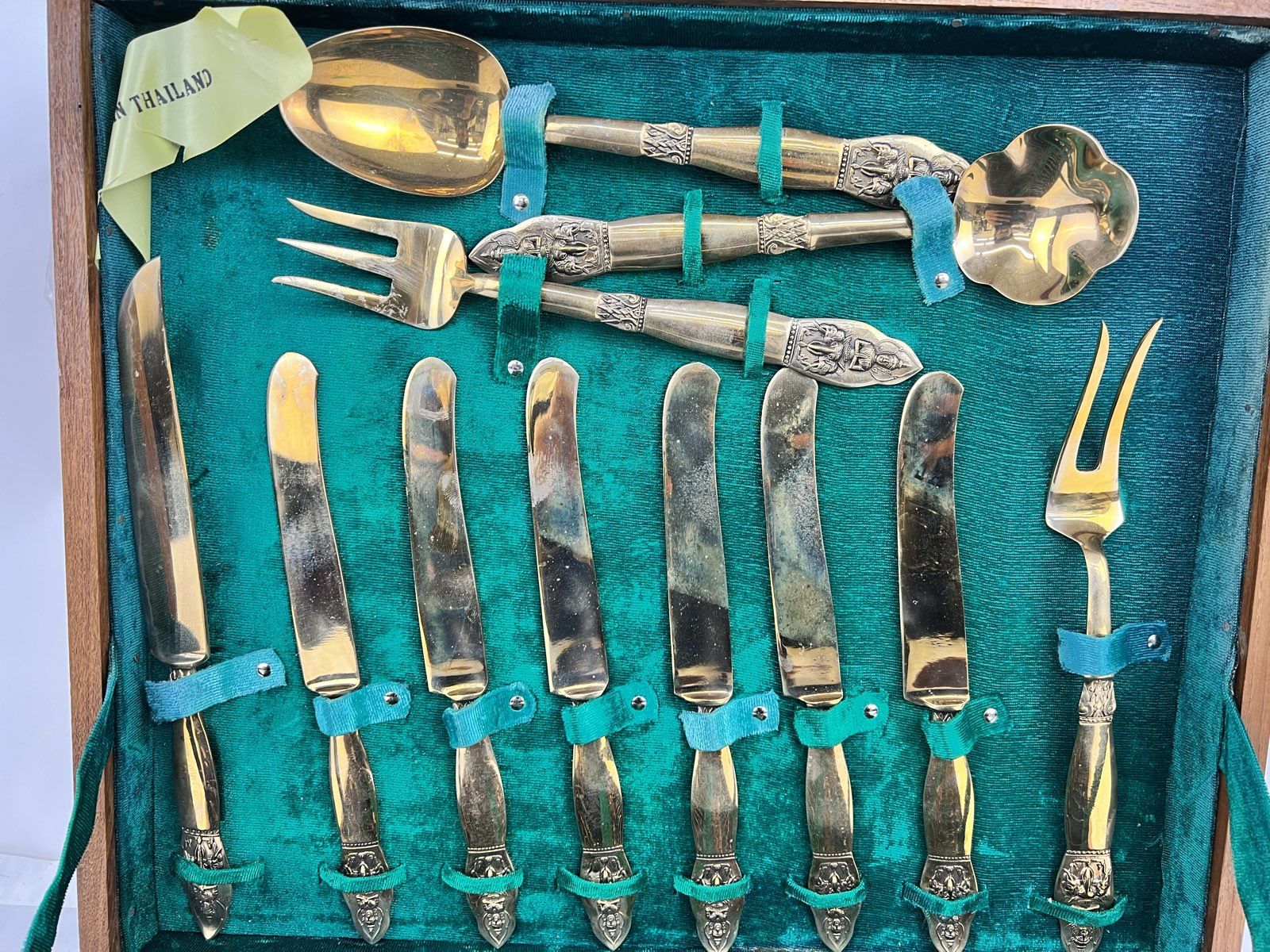 Vintage 41 Pc. Brass Buddha Flatware Made In Thailand 1967 with Chest