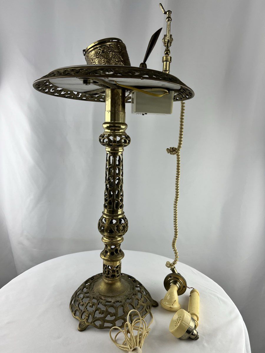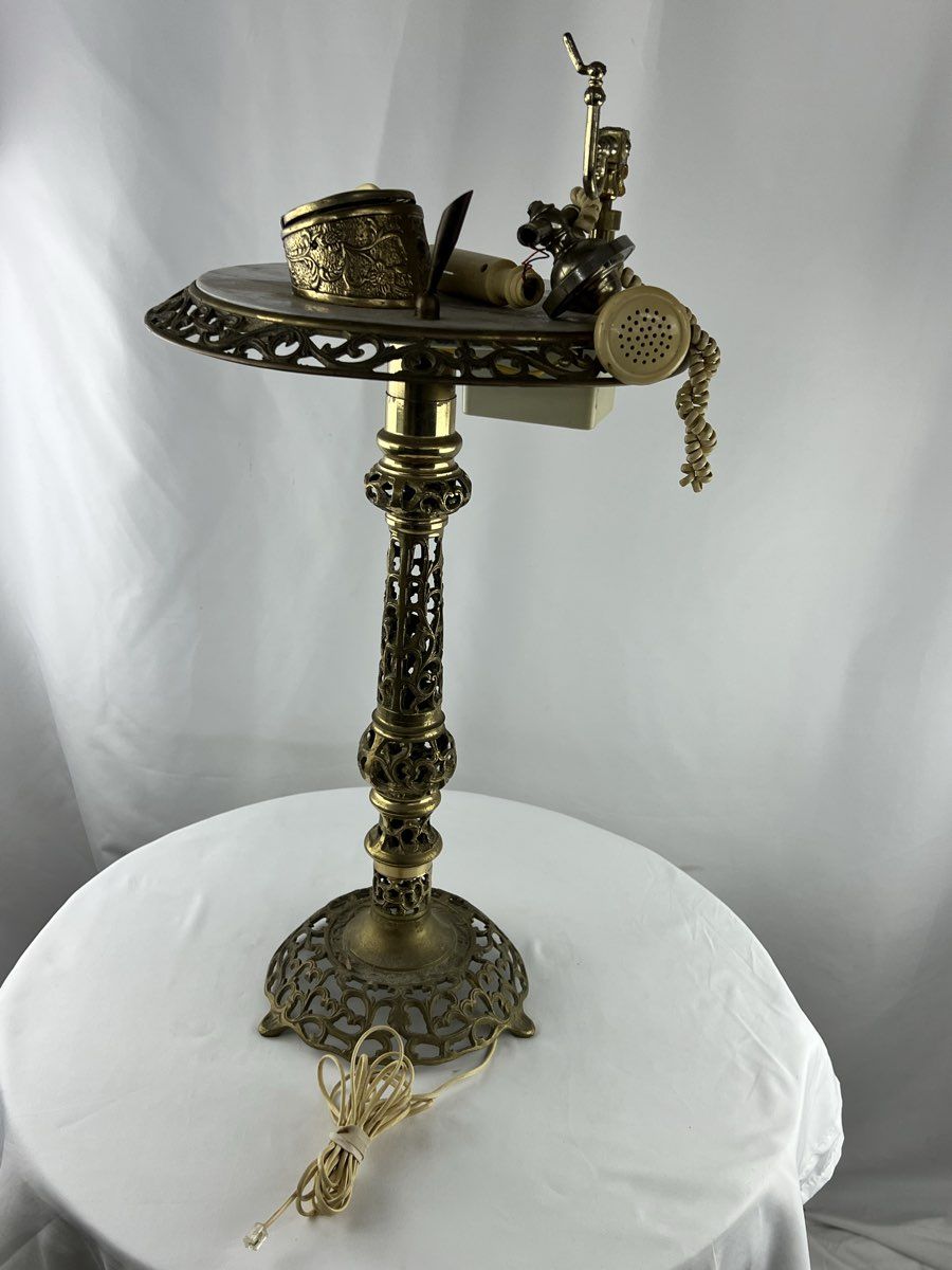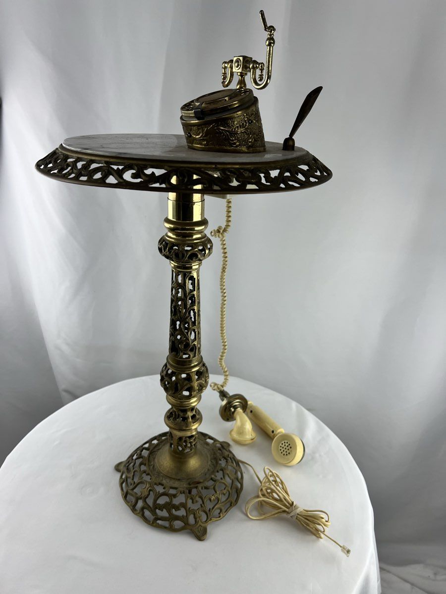 Vintage Gold Brass, Marble Rotary Telephone Table with Pen Holder