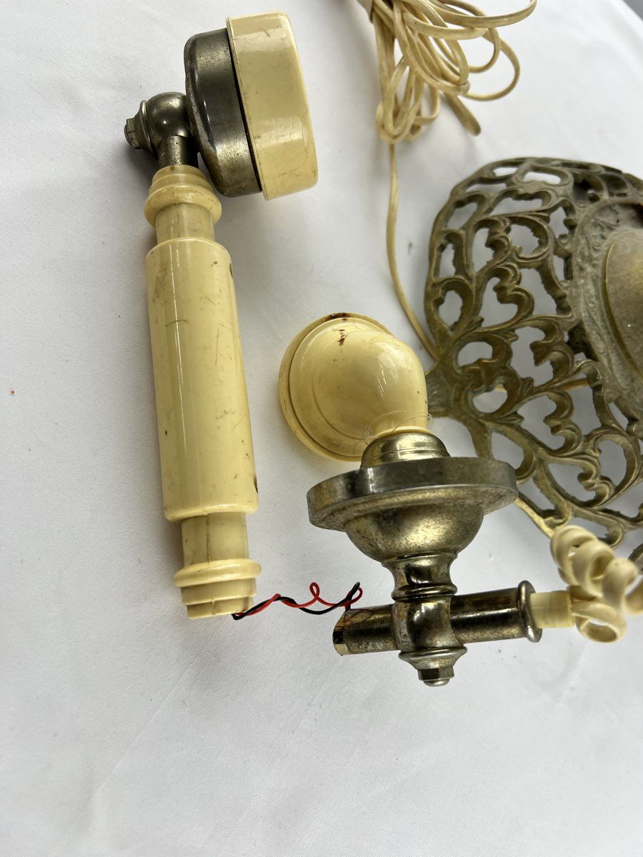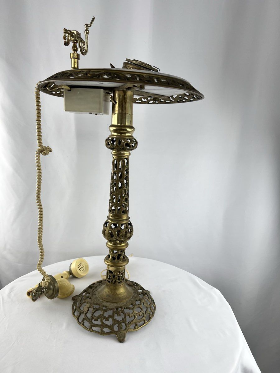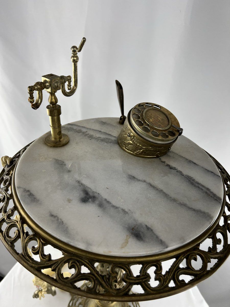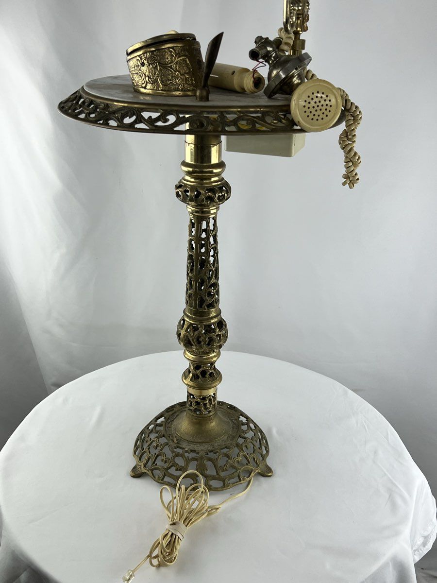 Vintage Gold Brass, Marble Rotary Telephone Table with Pen Holder