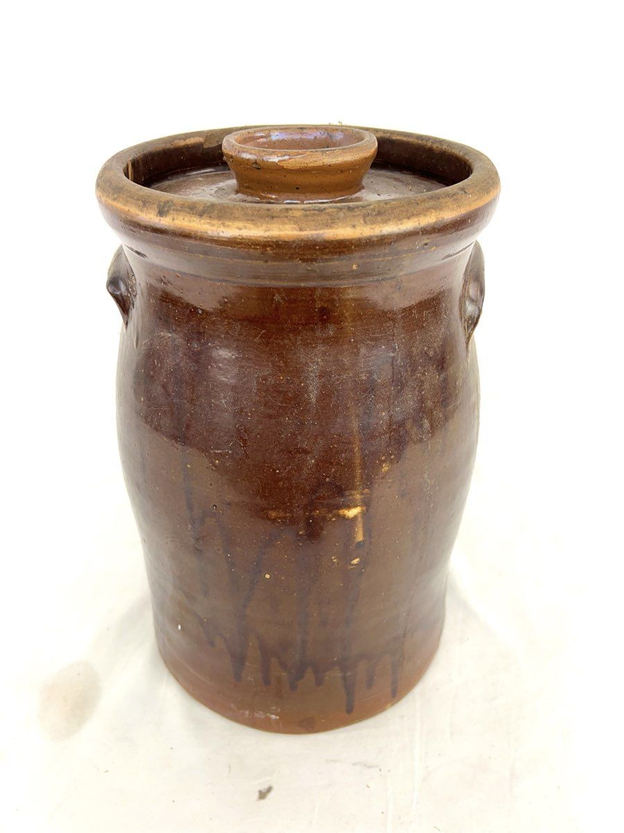 Vintage/Antique Primitive 3 Gallon Pottery Stoneware Churn 14" w/ Lid