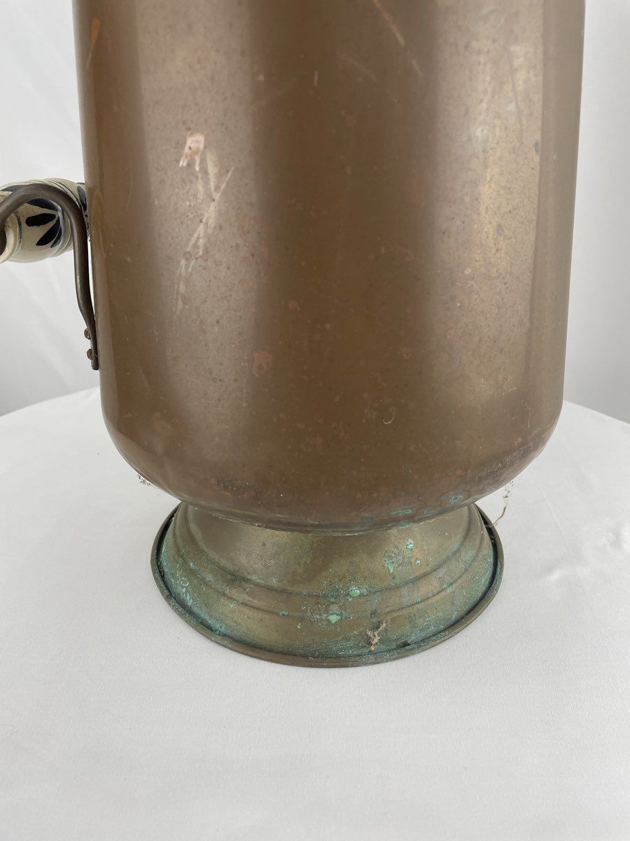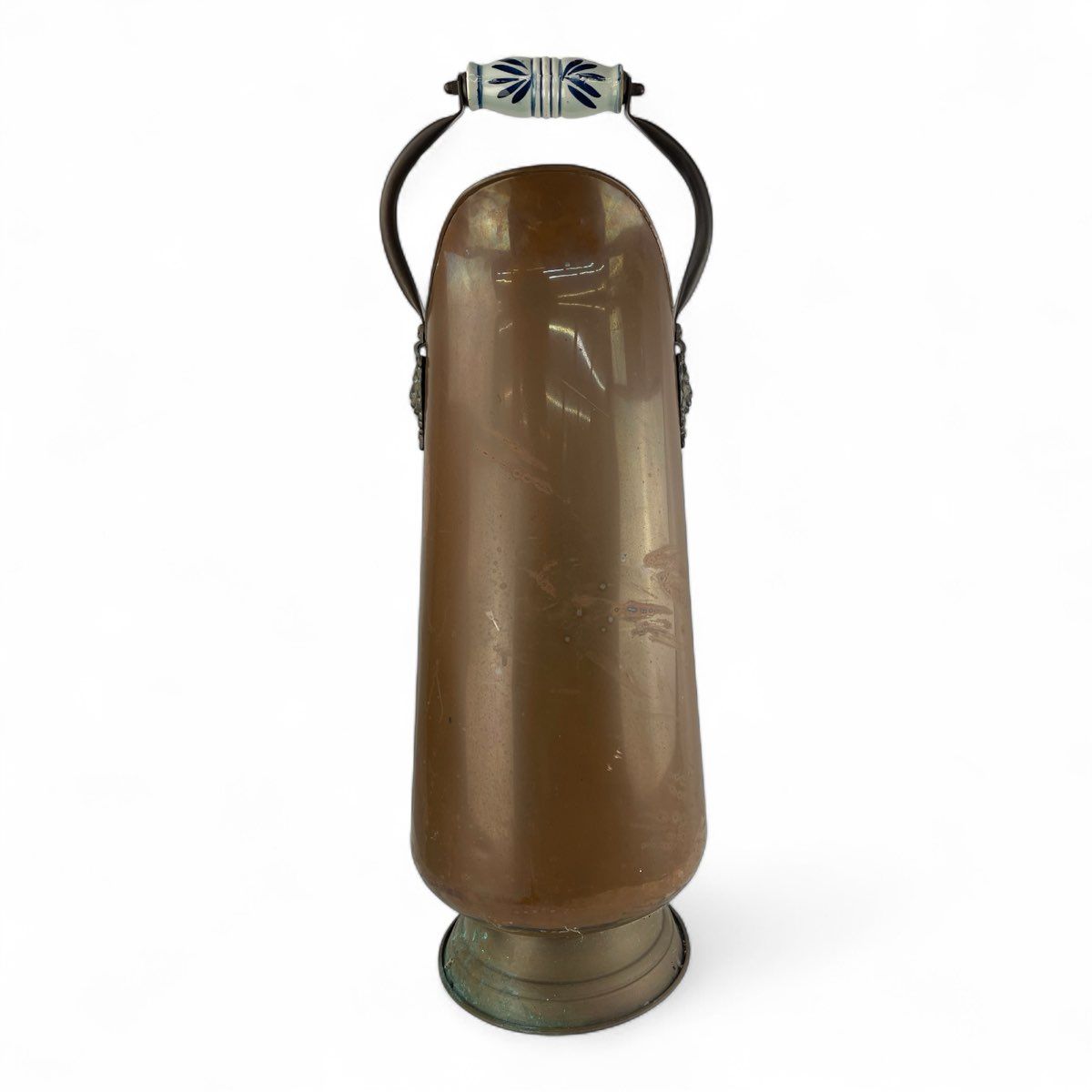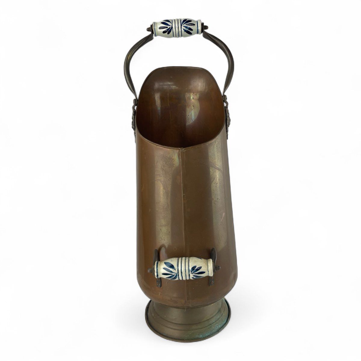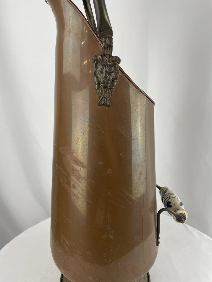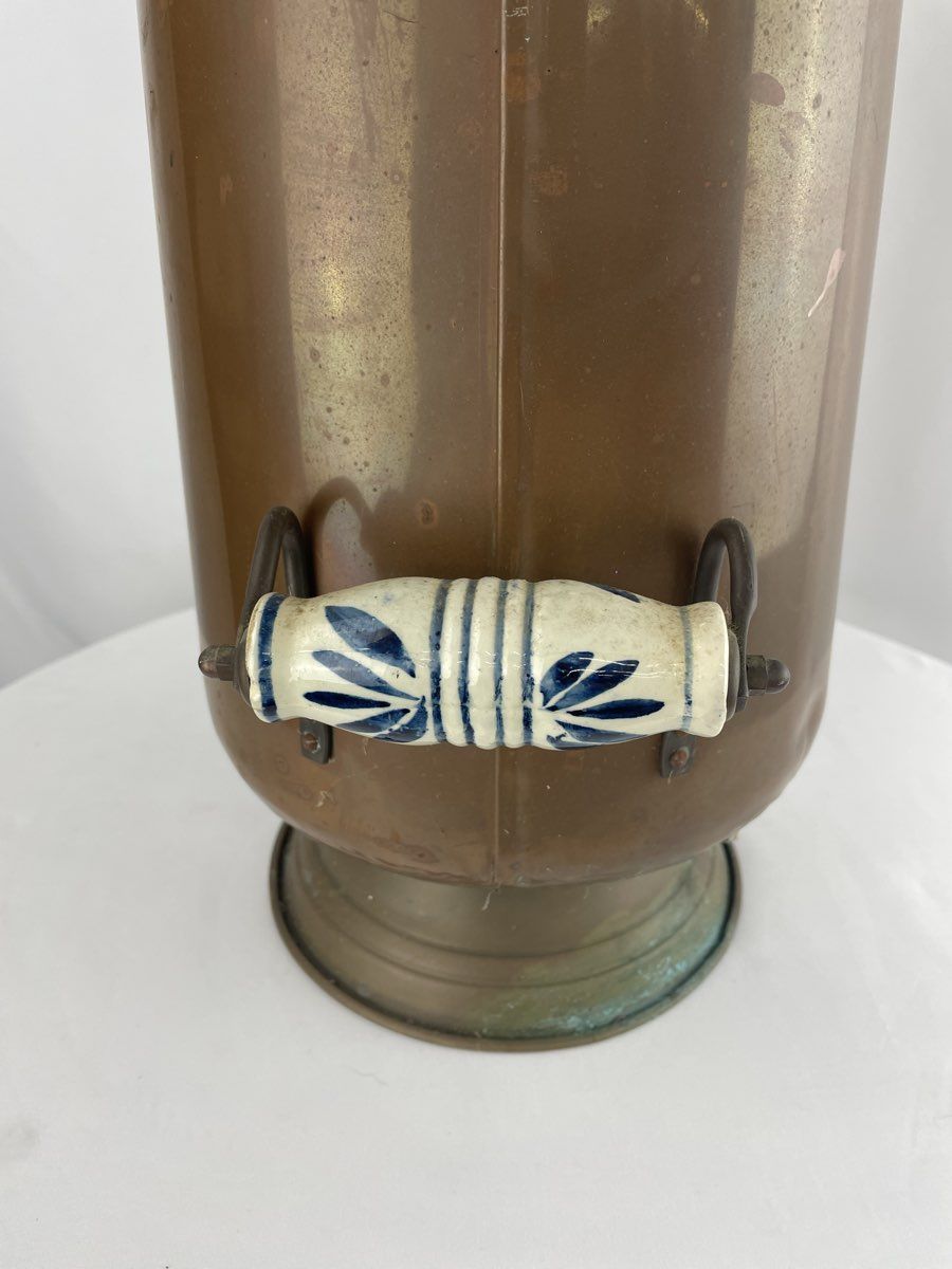 Vintage Holland Copper Brass Pitcher Umbrella Holder with Porcelain Handles