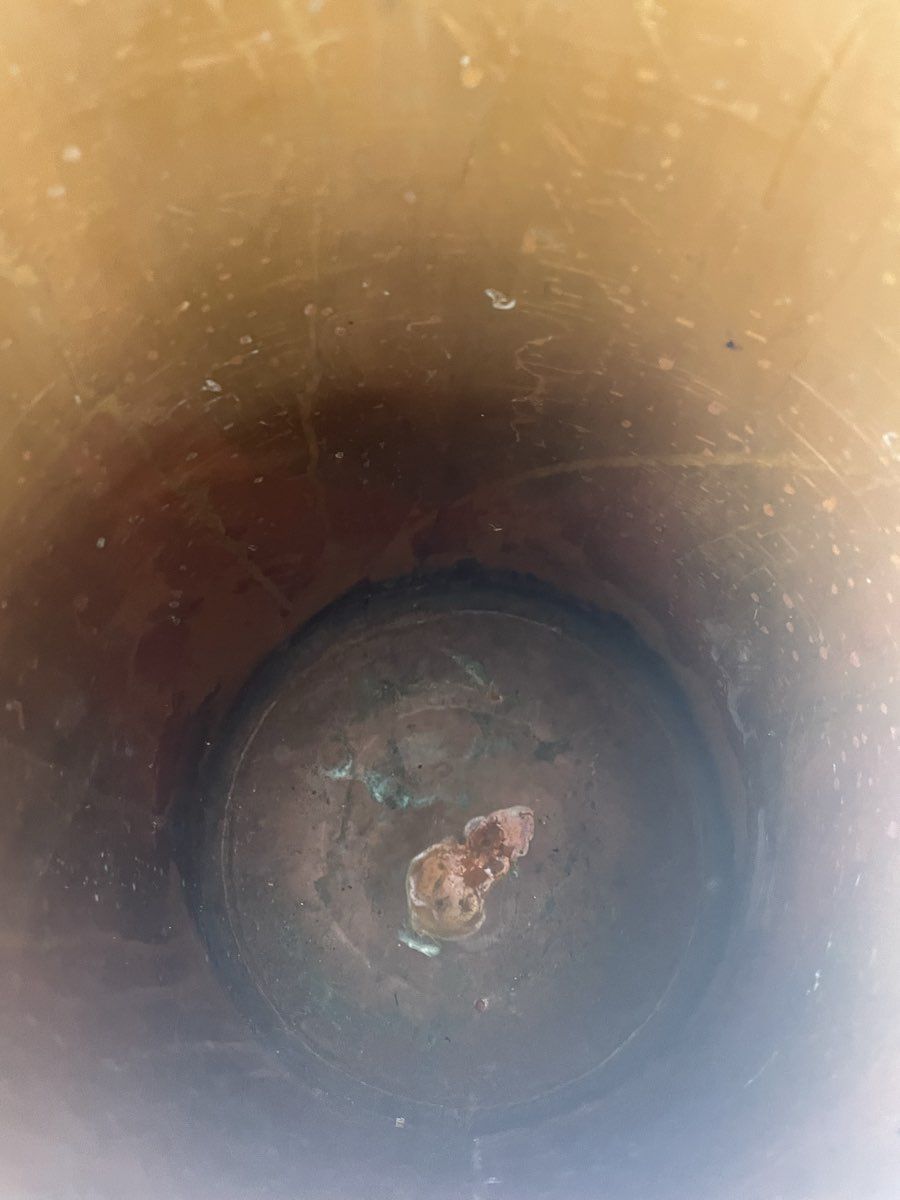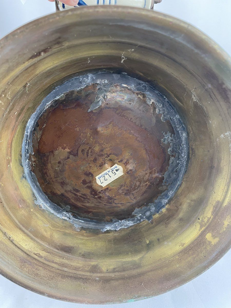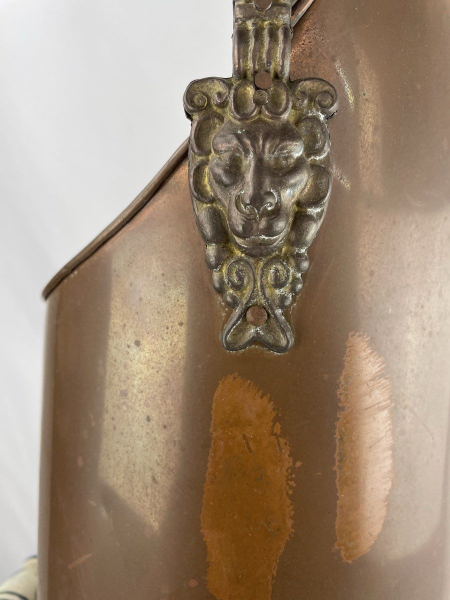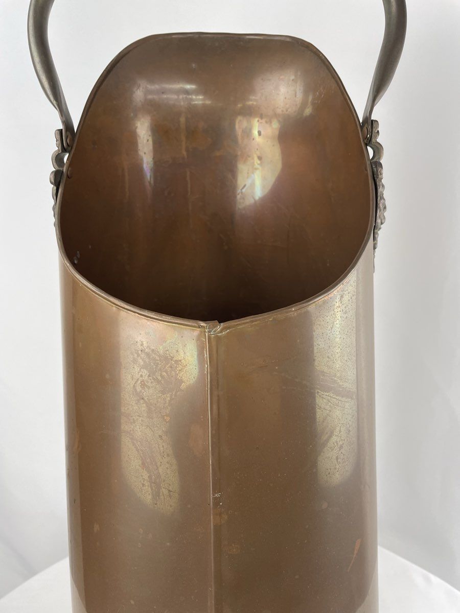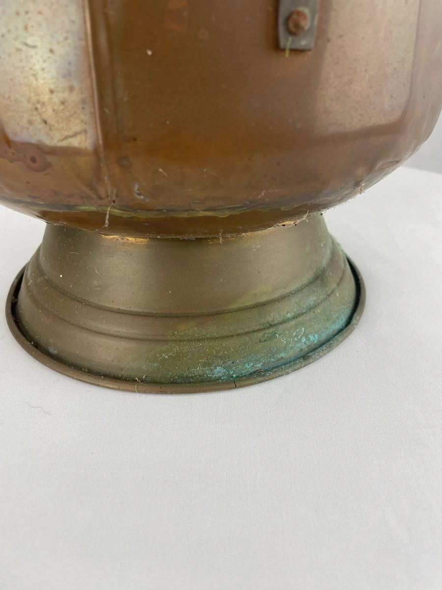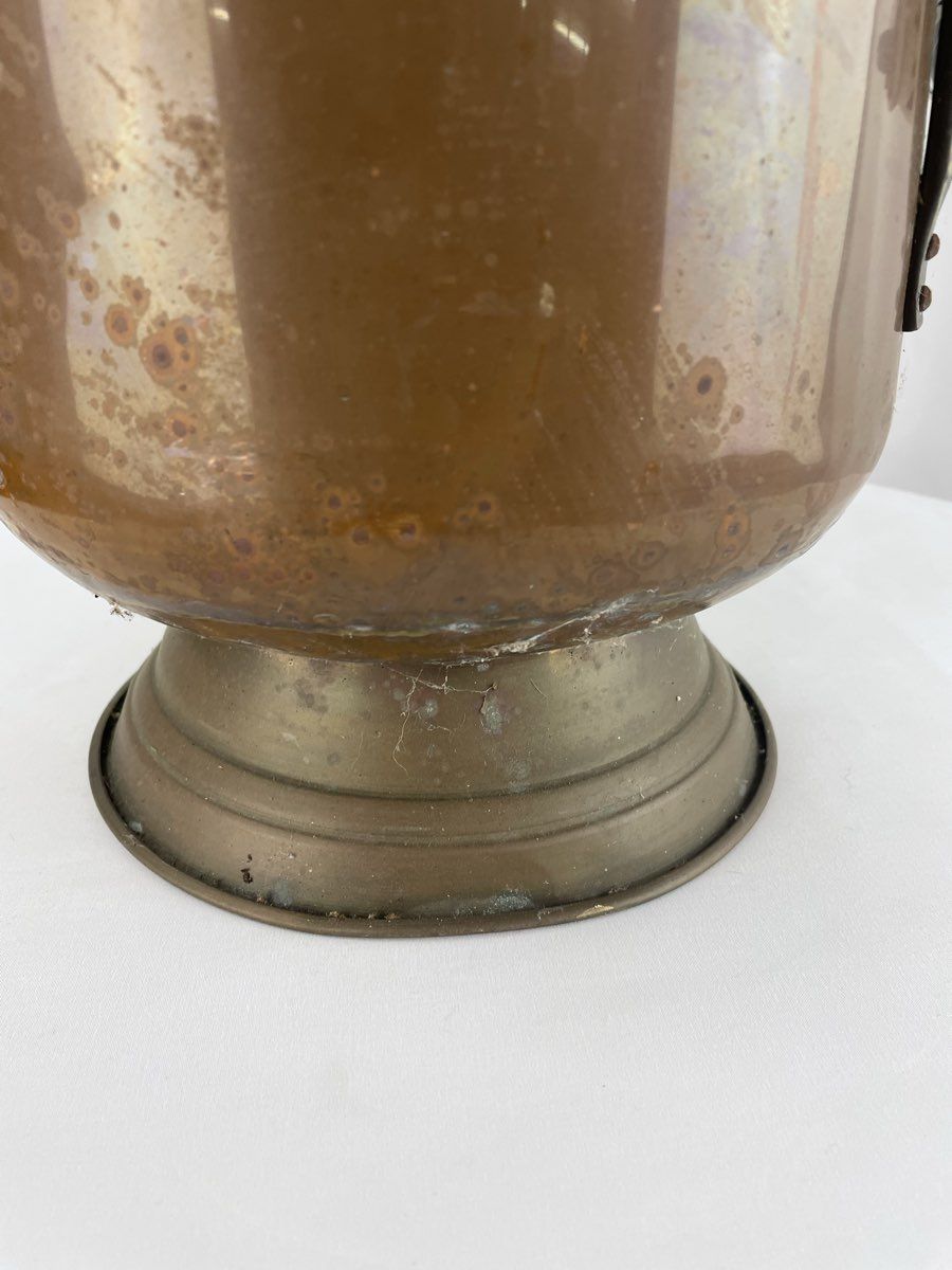 Vintage Holland Copper Brass Pitcher Umbrella Holder with Porcelain Handles