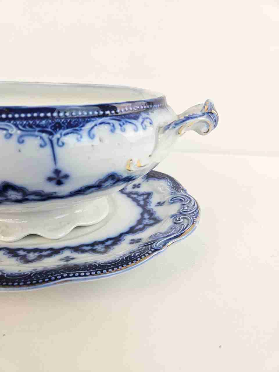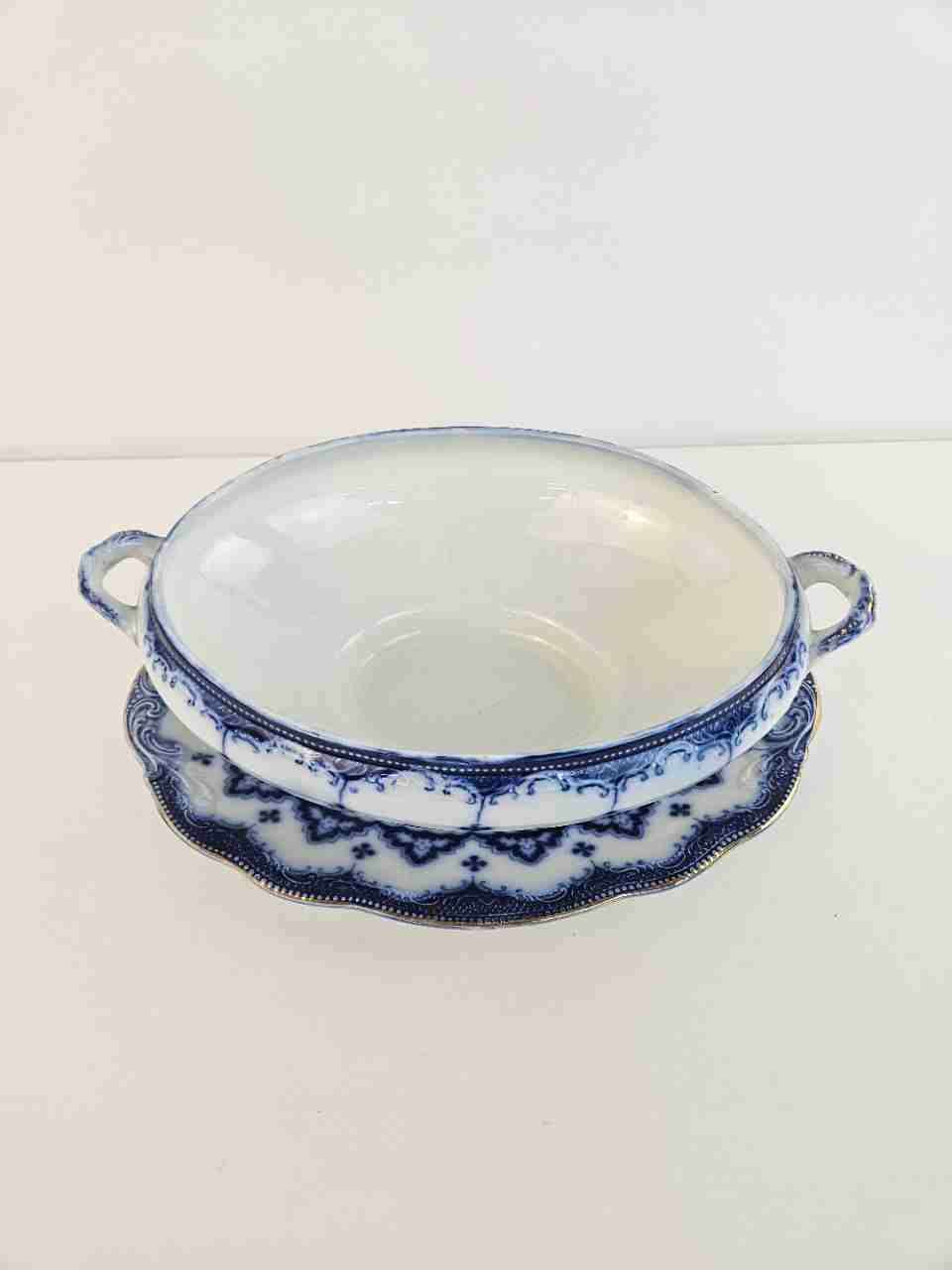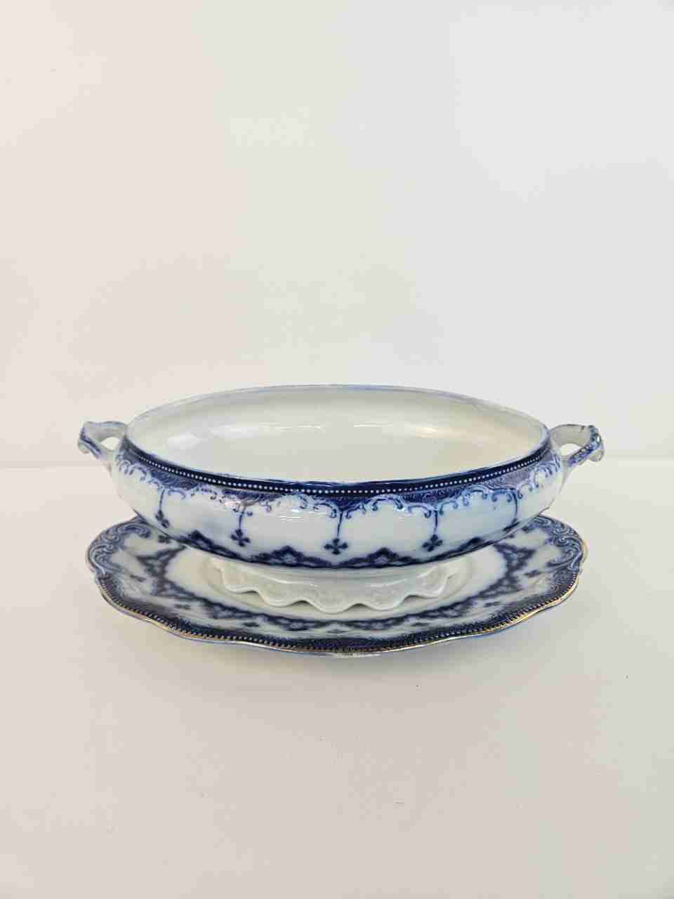 W.H. Grindley Astral Flow Blue Vegetable Dish Oval Tureen + Underplate